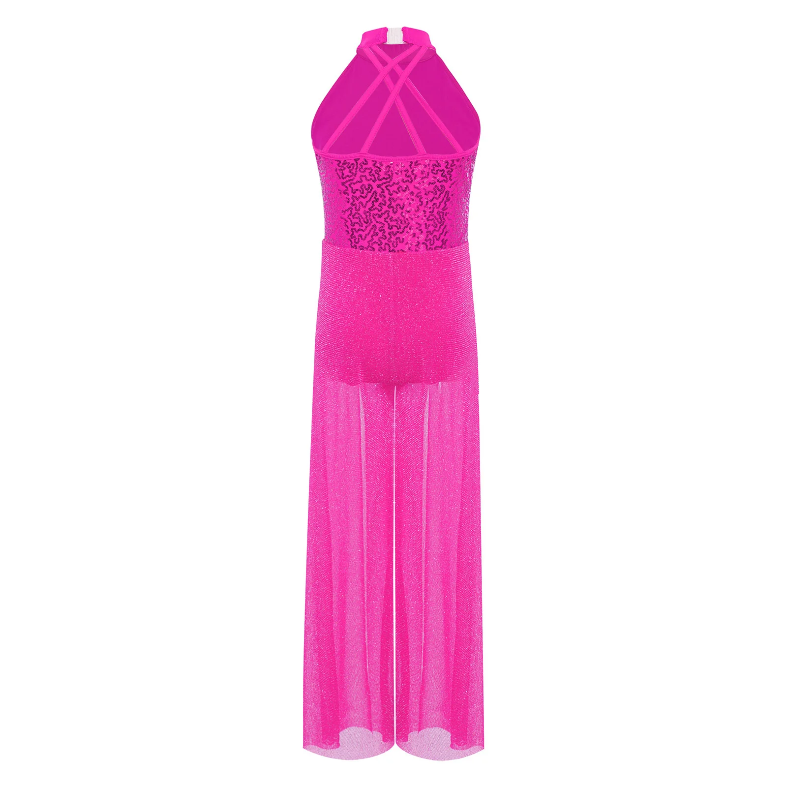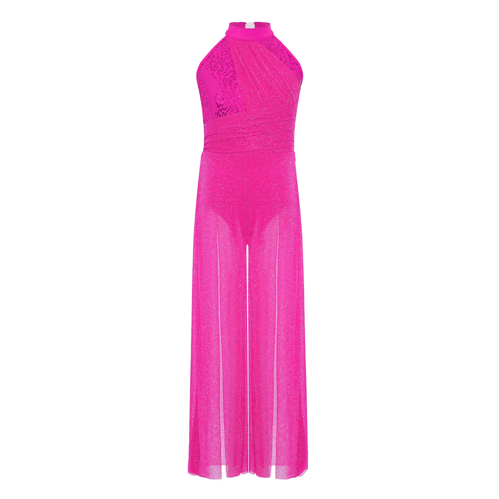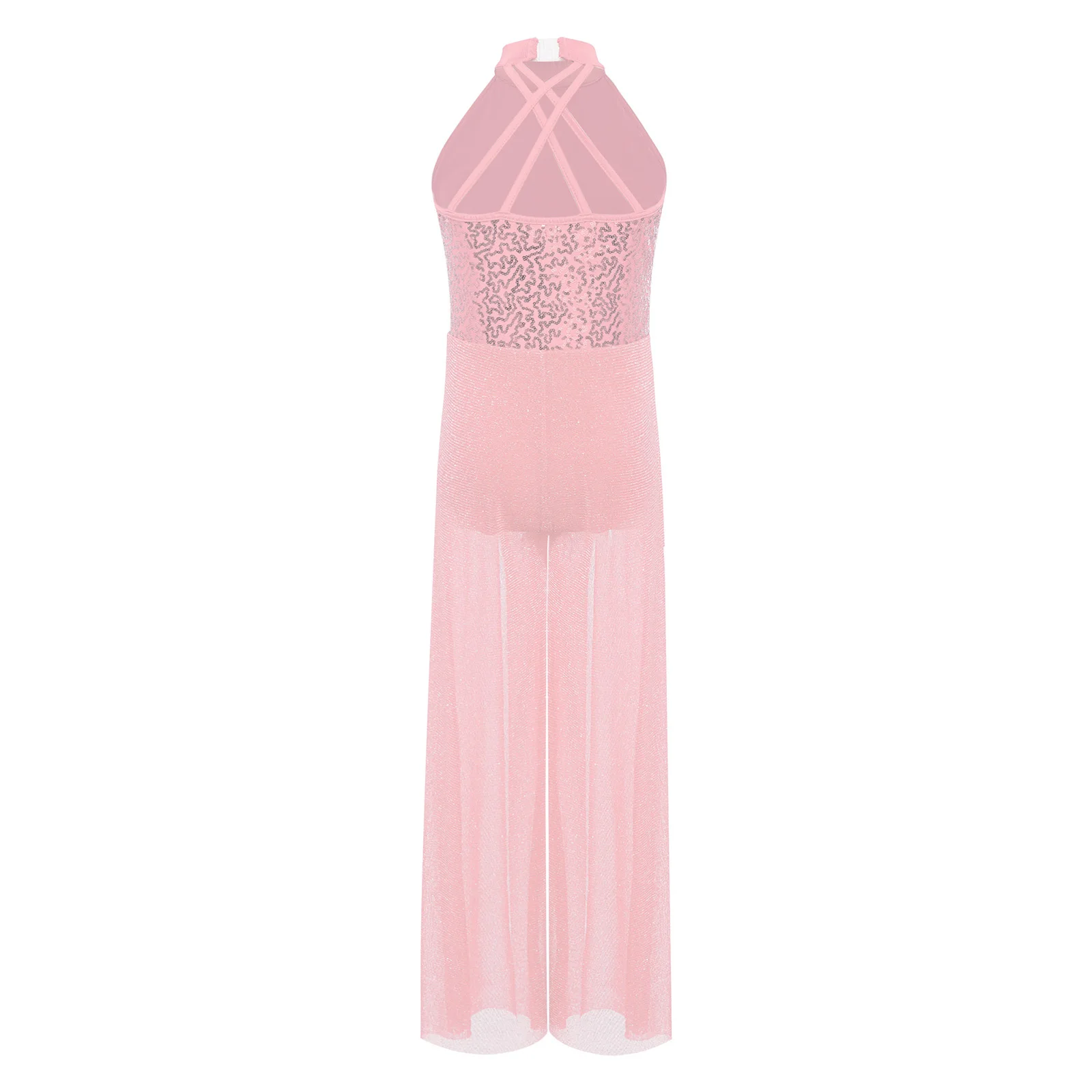 - Kids Girls Sequin Shimmery Gymnastic Ballet Jumpsuit: Wide-Leg One-piece Dance Modern Contemporary Costume,Kids Girls Sleeveless Contemporary Dance Costume