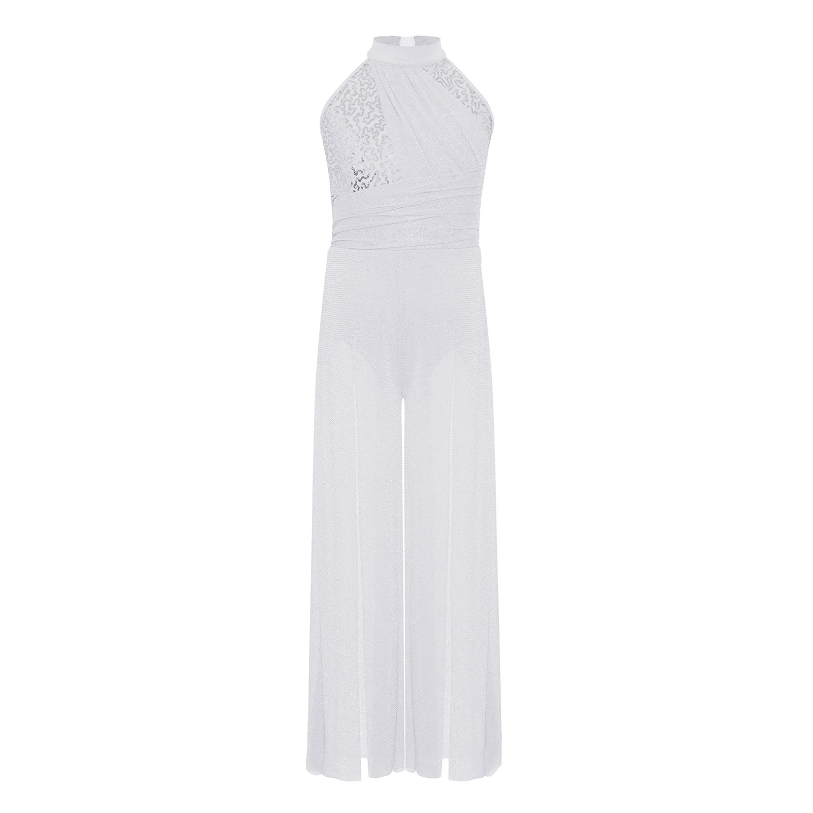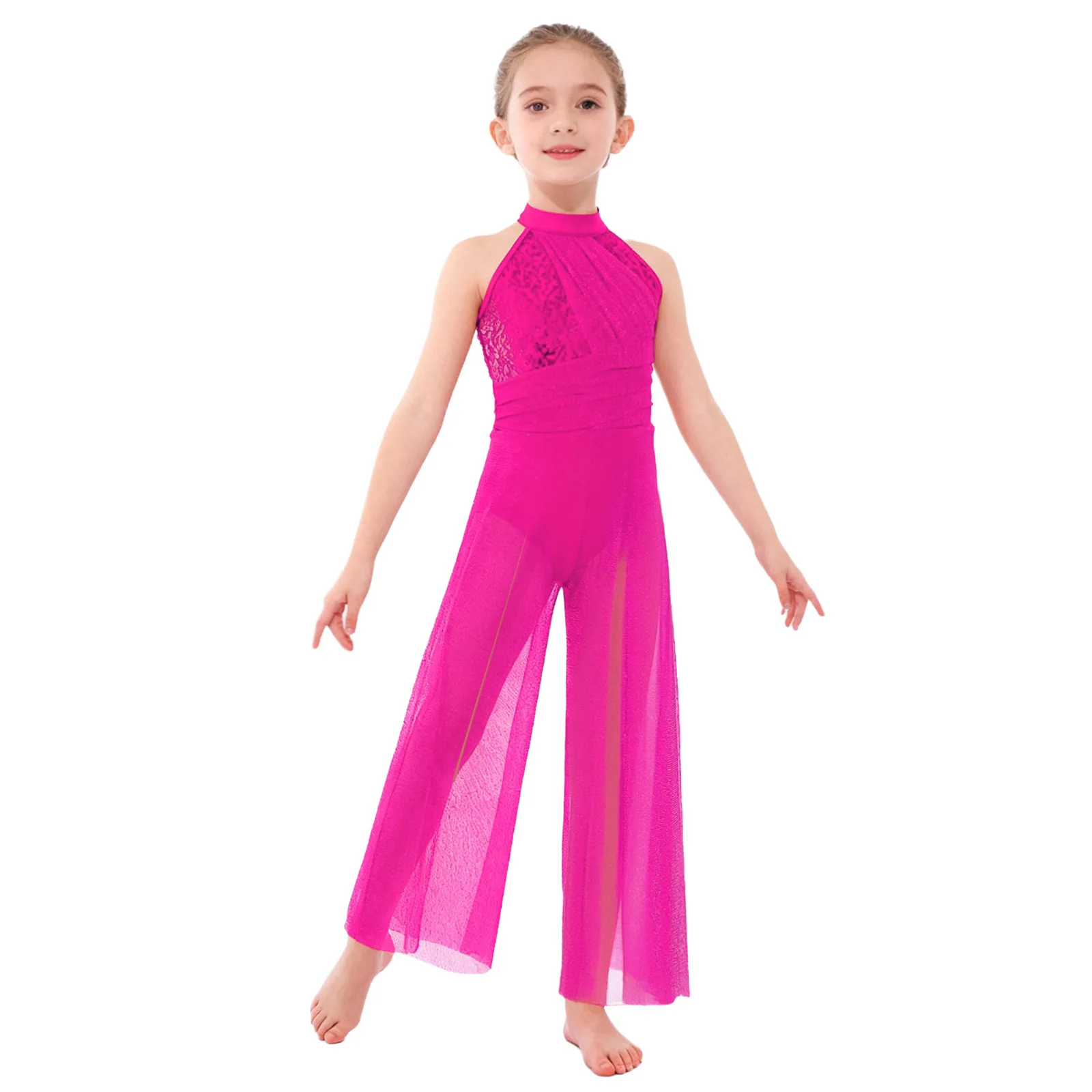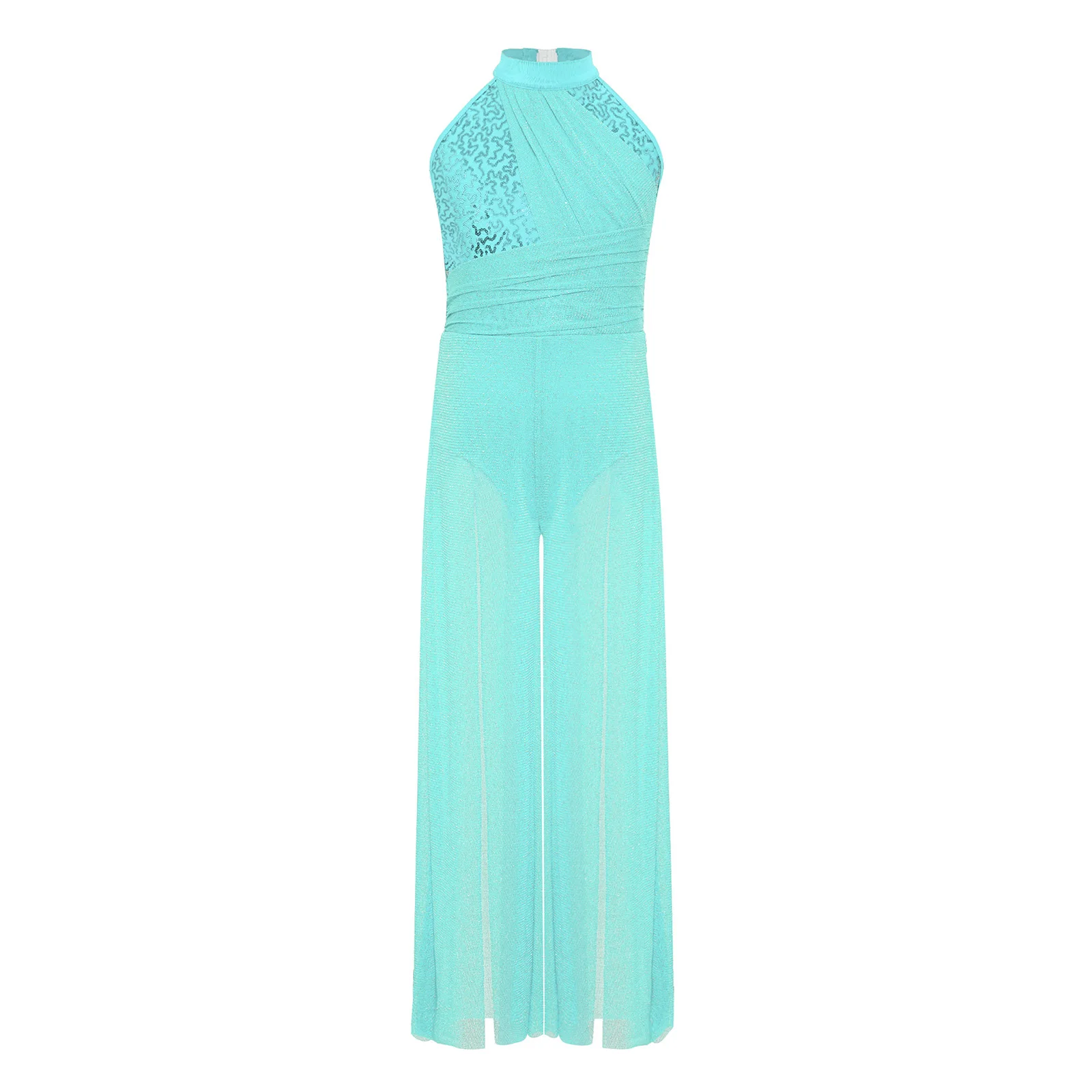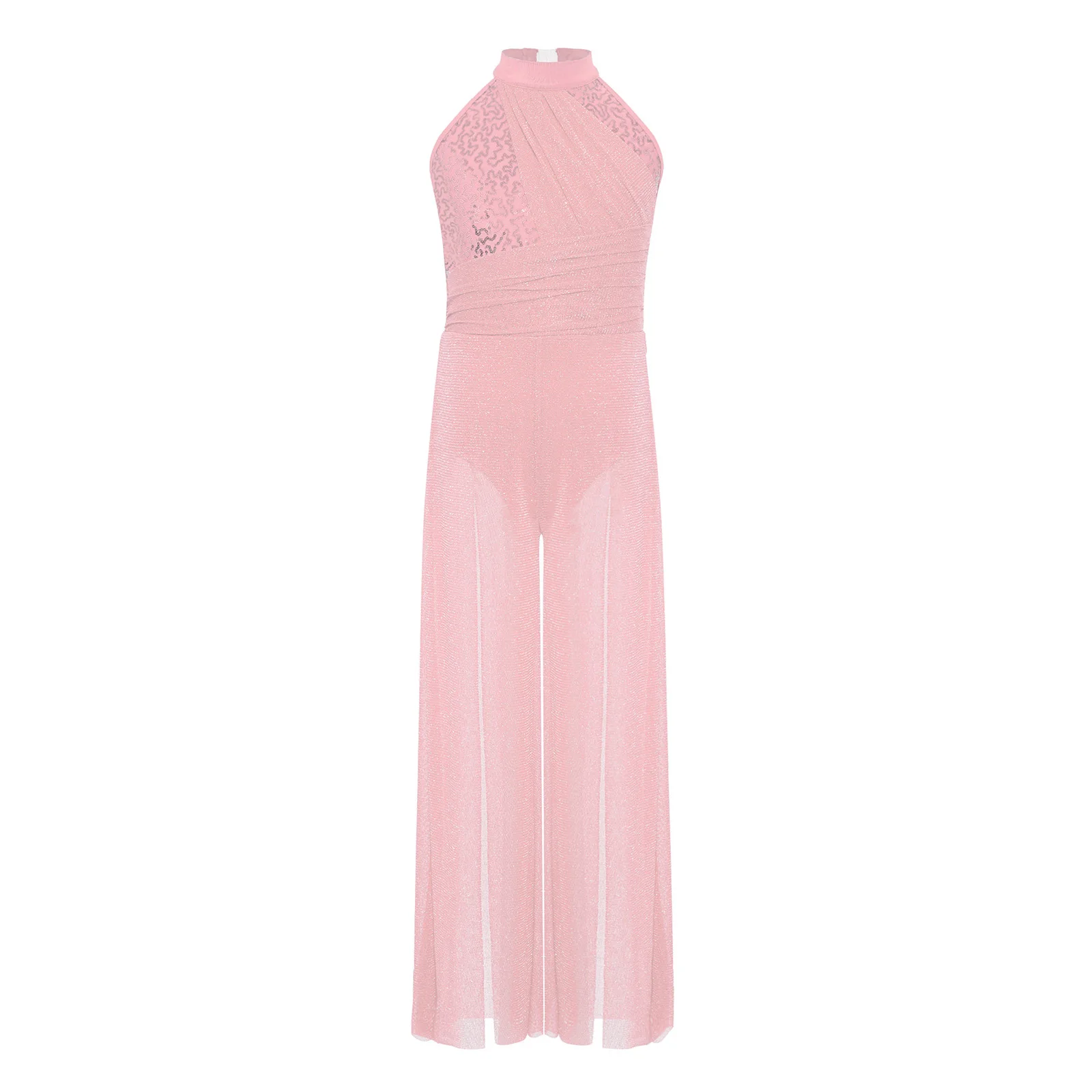 - Kids Girls Sequin Shimmery Gymnastic Ballet Jumpsuit: Wide-Leg One-piece Dance Modern Contemporary Costume,Kids Girls Sleeveless Contemporary Dance Costume