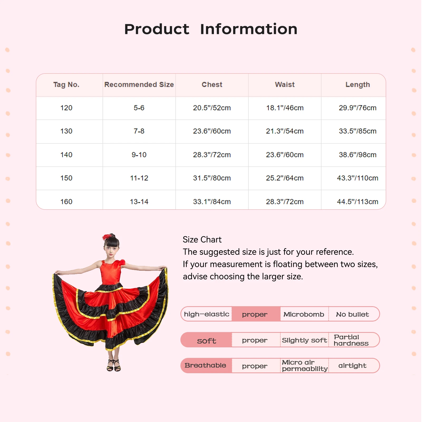 - Model Number: Kids Spanish Costume Girls Long Flamenco Ballroom Lyrical Dance Dress