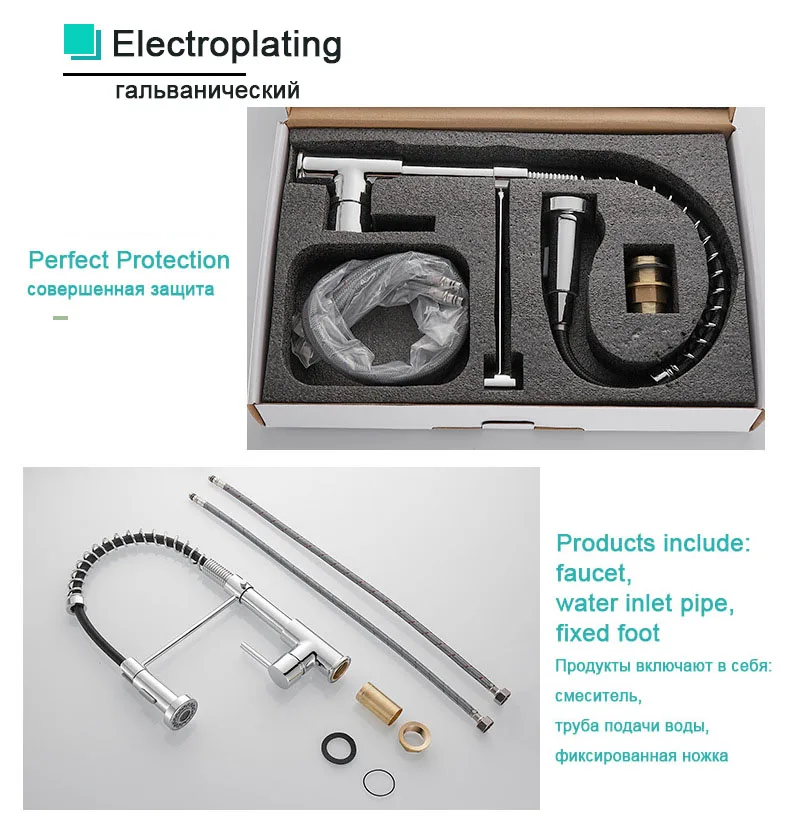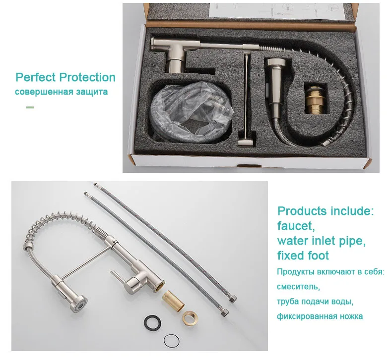 Pull Down Kitchen Sink Faucet One Handle Spring Hot and Cold Water Tap Kitchen Crane