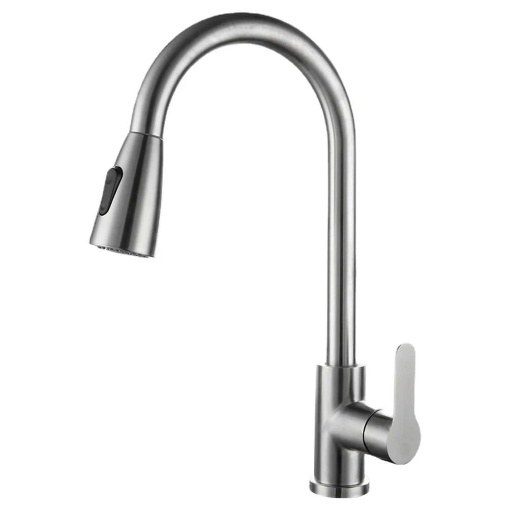 This is a lightweight and uniquely designed kitchen sink pull-up hot and cold faucet. The bent pipe outlet pipe is wrapped in high-quality 304 stainless steel, and the inner pipe and outlet nozzle are made of high-quality ABS plastic. The cold and hot switch uses a ceramic valve core, which is durable!