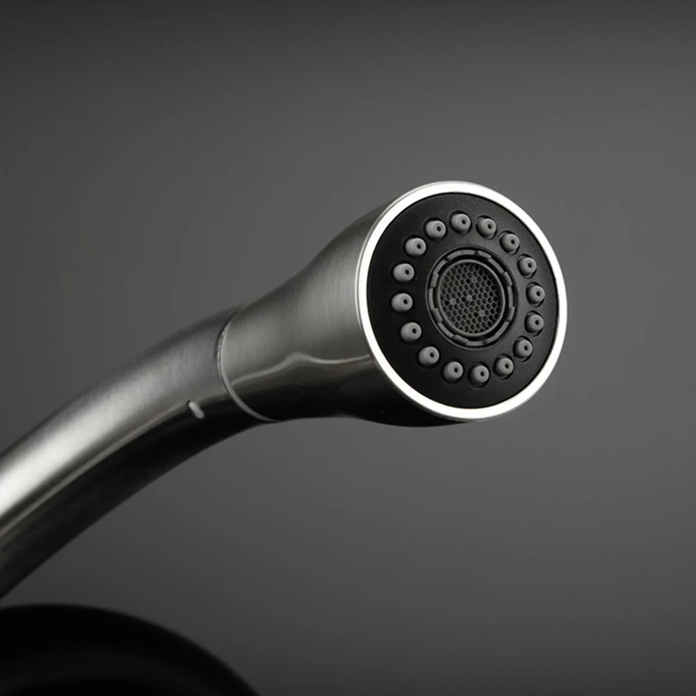 The kitchen faucet adopts an extended pull design, covering the entire sink and meeting various cleaning tasks.