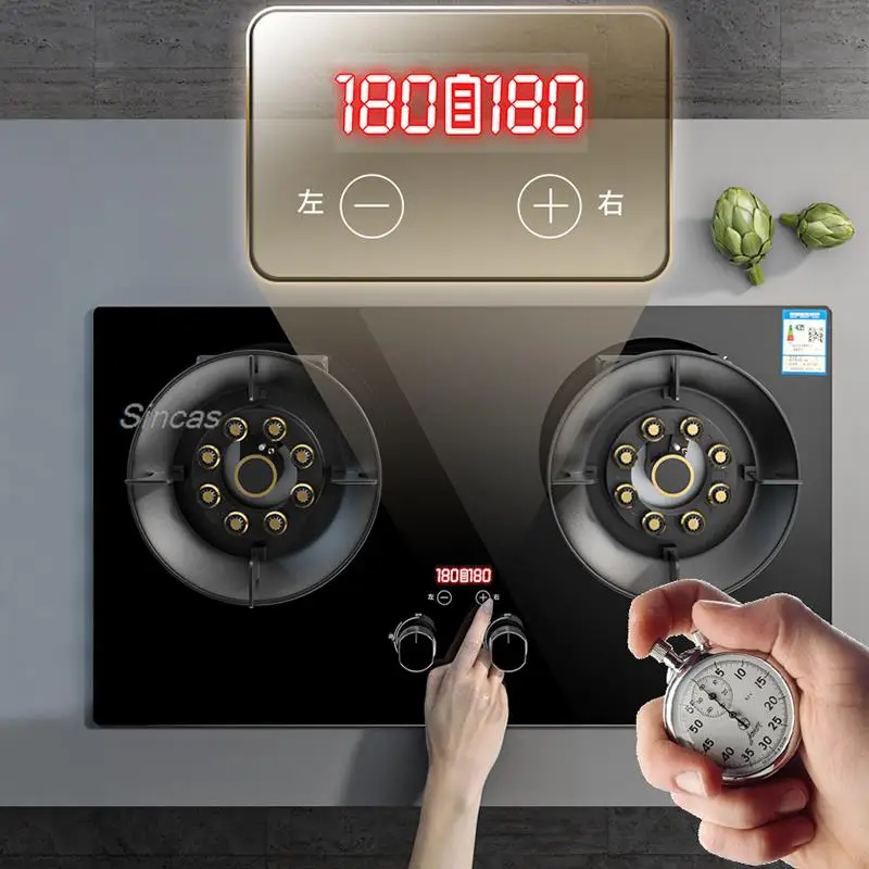 Kitchen Gas Stoves Flipped Dual Stove Kitchen Embedded Nature Gas/LPG Timing Stove Desktop Dual-Use Cooktop Gas Panel Gas Cooker