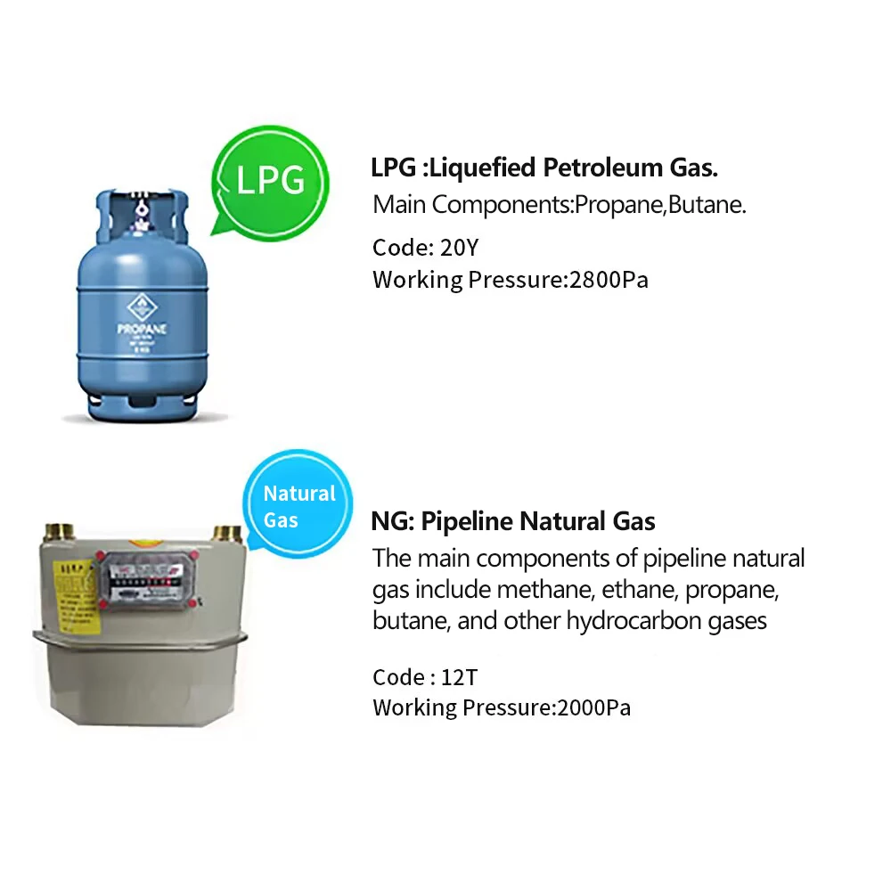 - Applicable gas source: Natural Gas/Liquefied Petroleum Gas