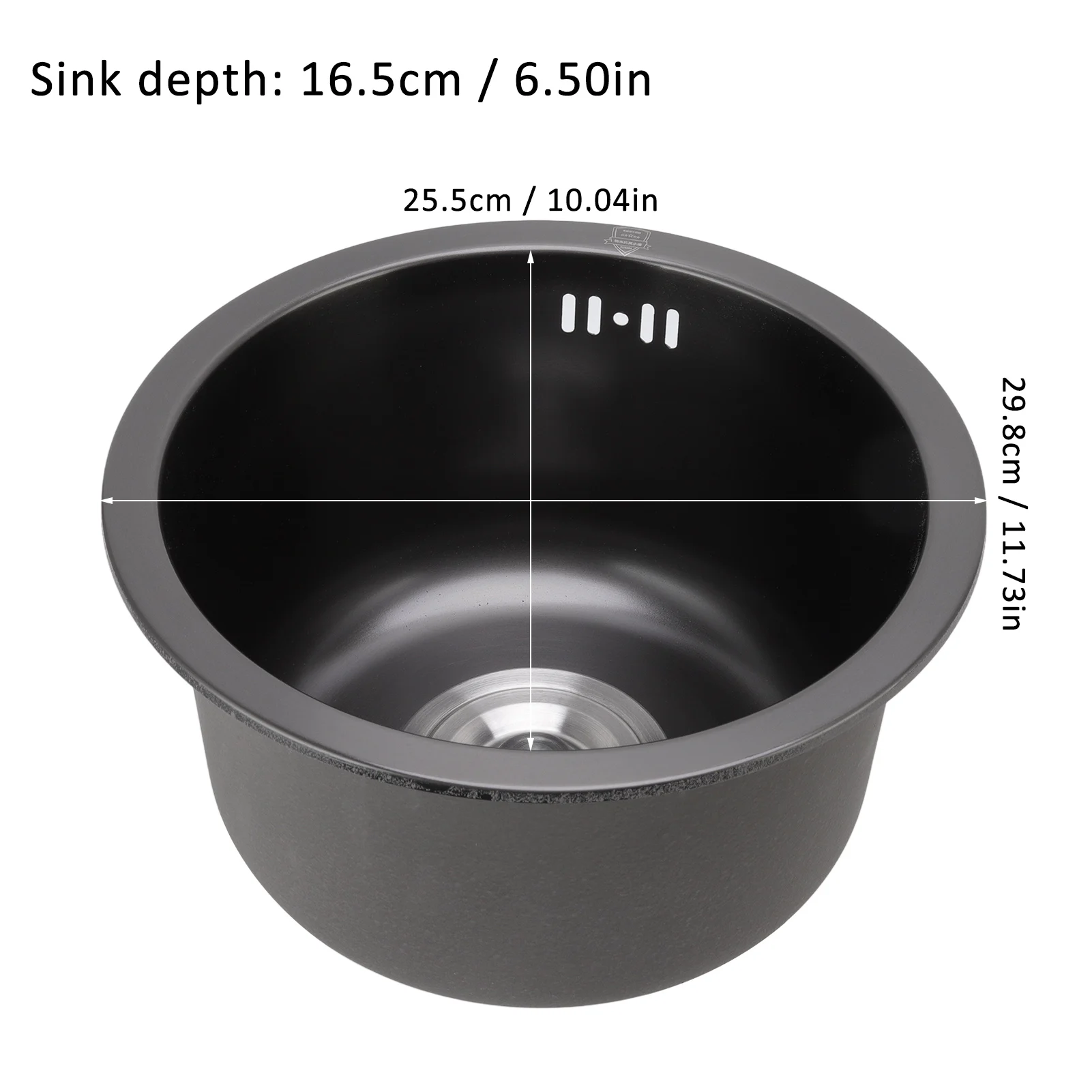 5. Product Size: Outer diameter of sink is about 30cm / 11.8in, inner diameter of sink is about 25.5cm / 10.0in, sink depth is about 16.5cm / 6.5.
