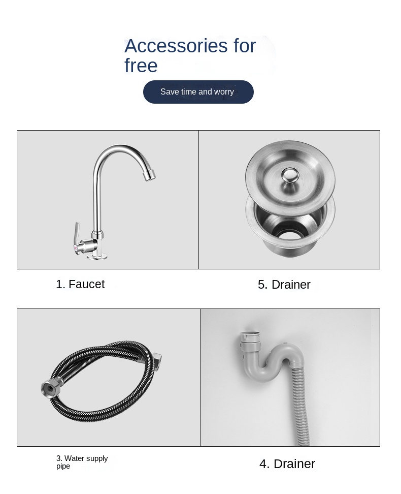 package D: sink, drainer, downpipe, faucet, water inlet pipe,wall bracket