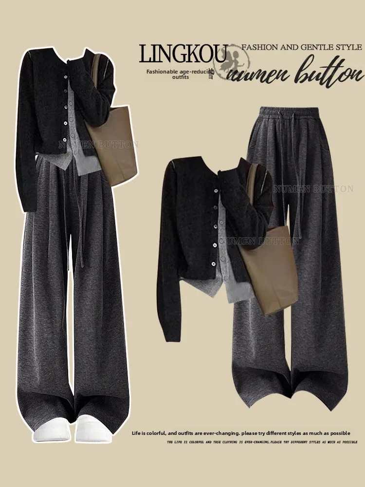 This two-piece set includes a cozy knitwear and matching pants, providing a complete look for any casual occasion.