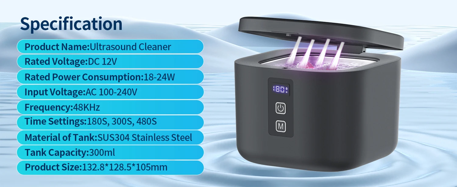 Ultrasonic Cleaner 300ML Adjustable Large Capacity Fast Powerful Jewelry Brace Glasses Jewelry Cleaning Machine Household
