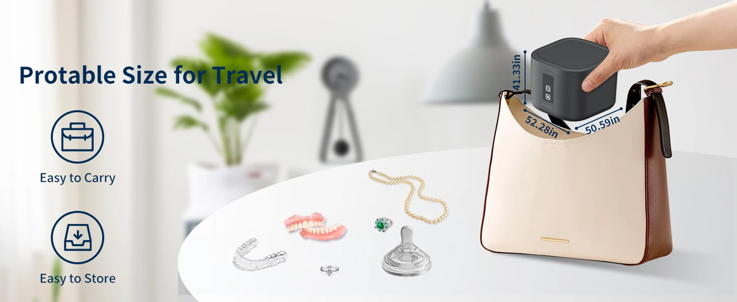 【Stylish Design】This ultrasonic cleaner can be put into your luggage without taking up too much space. Whether you are at home or away, this device can ensure that the original items accompany you, thus enhancing your travel experience.