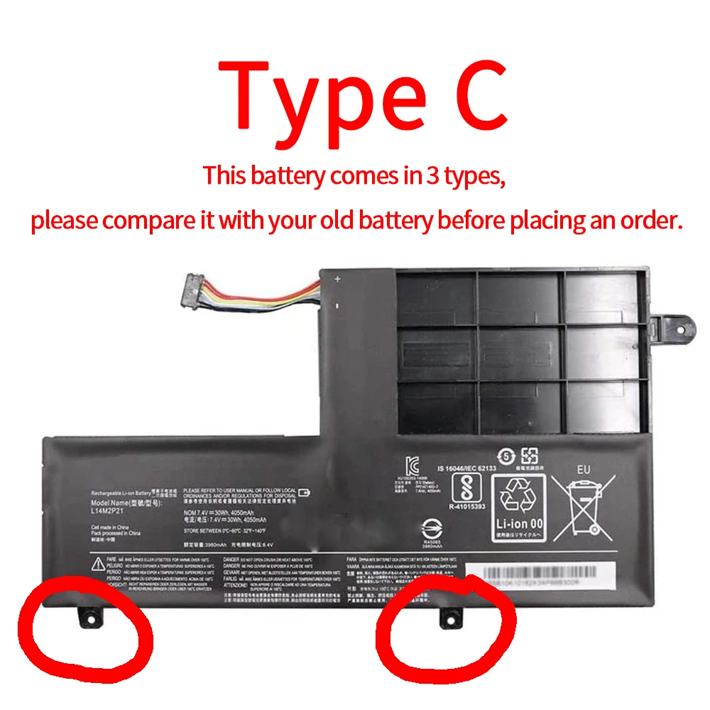 This battery comes in 3 types, which are distinguished by several screw mounting holes.