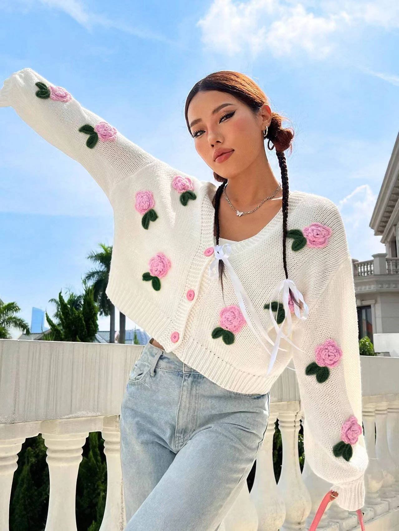 Exquisitely crafted with a delicate floral pattern, this cardigan adds a touch of elegance to any outfit.