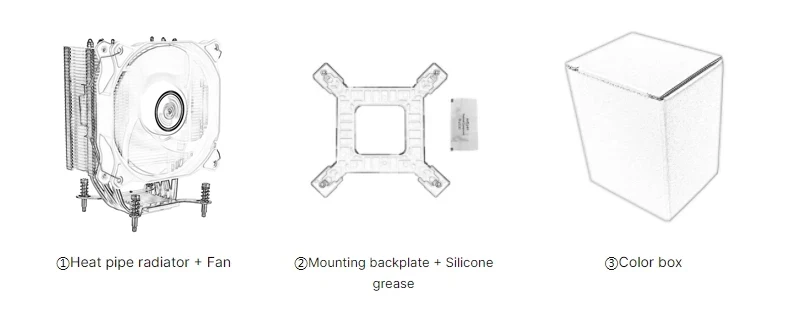 Package: Color Box ( CPU cooler*1, fixing backplate*1, silicone grease*1 )