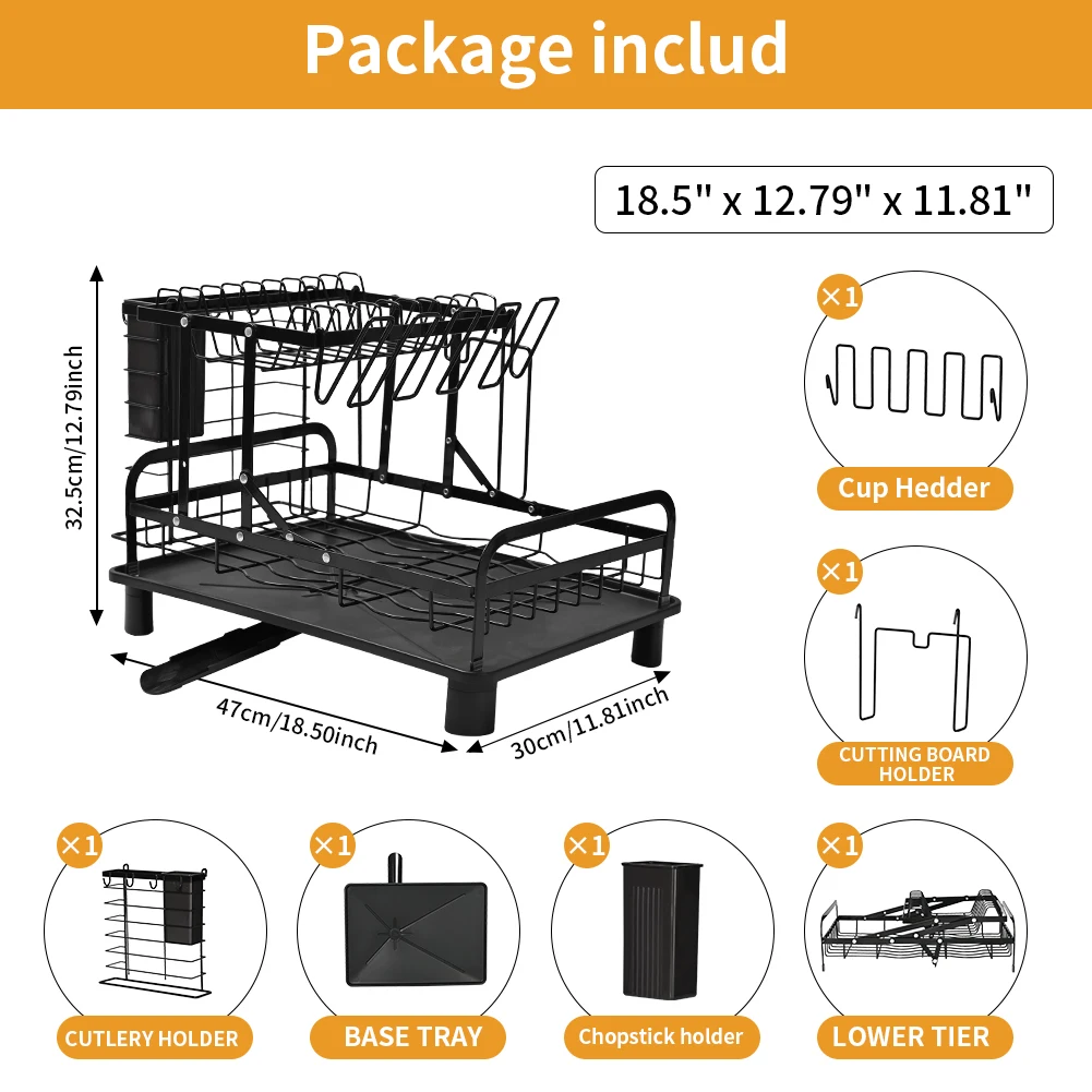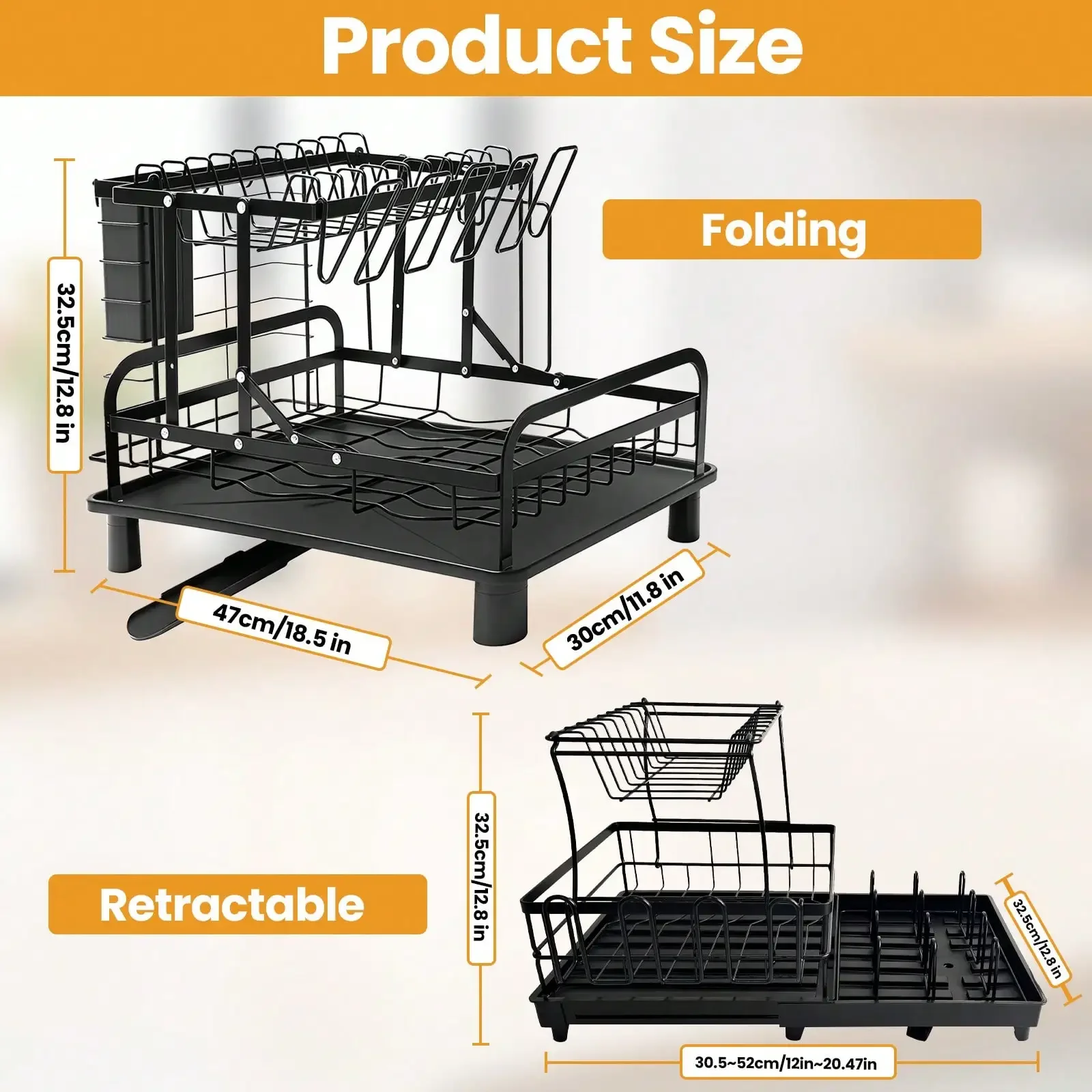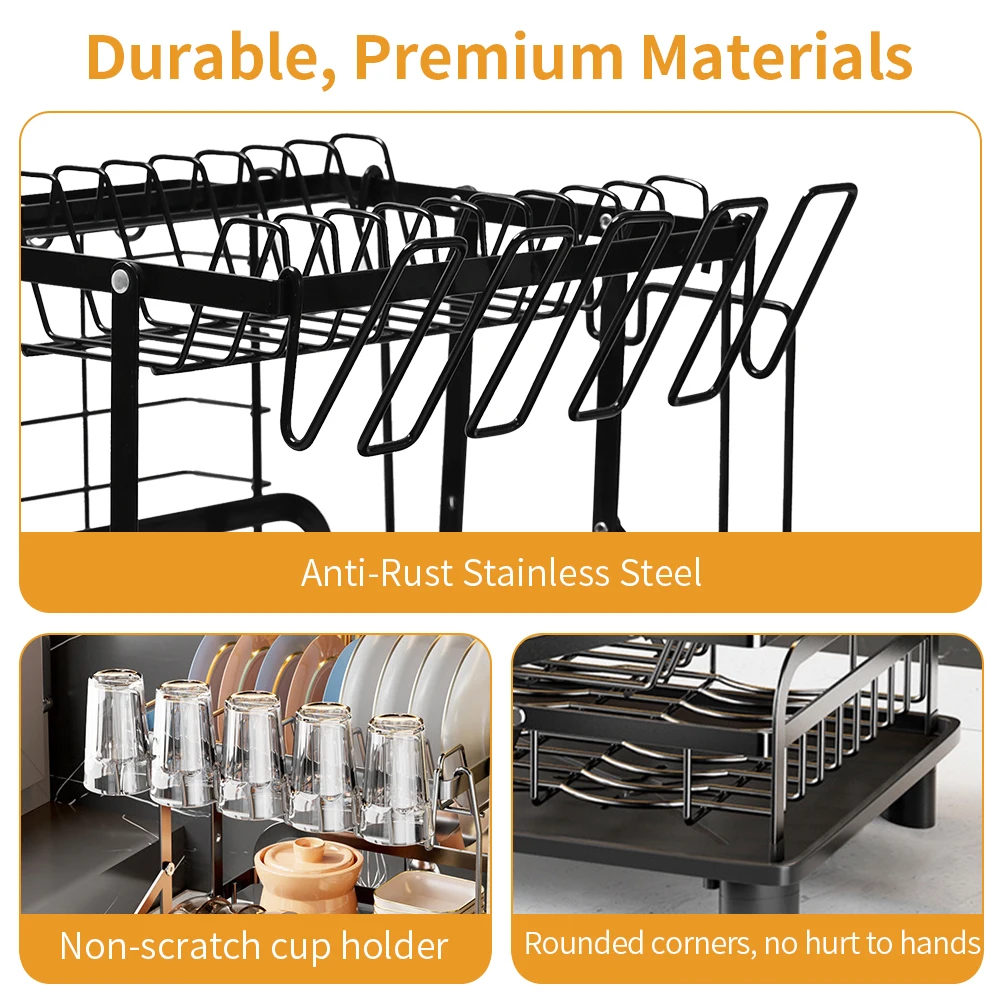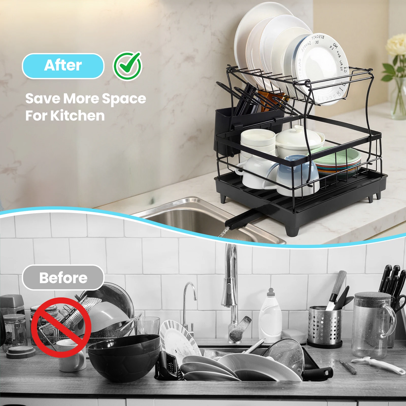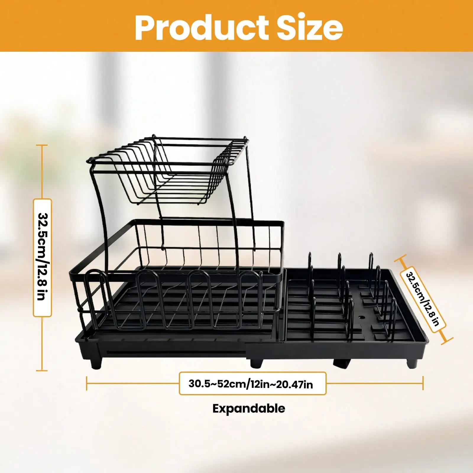 Large Capacity 2-Tier Design: This drying rack for kitchen counter take a detachable 2-tier design, easily accommodating various kitchen essentials.