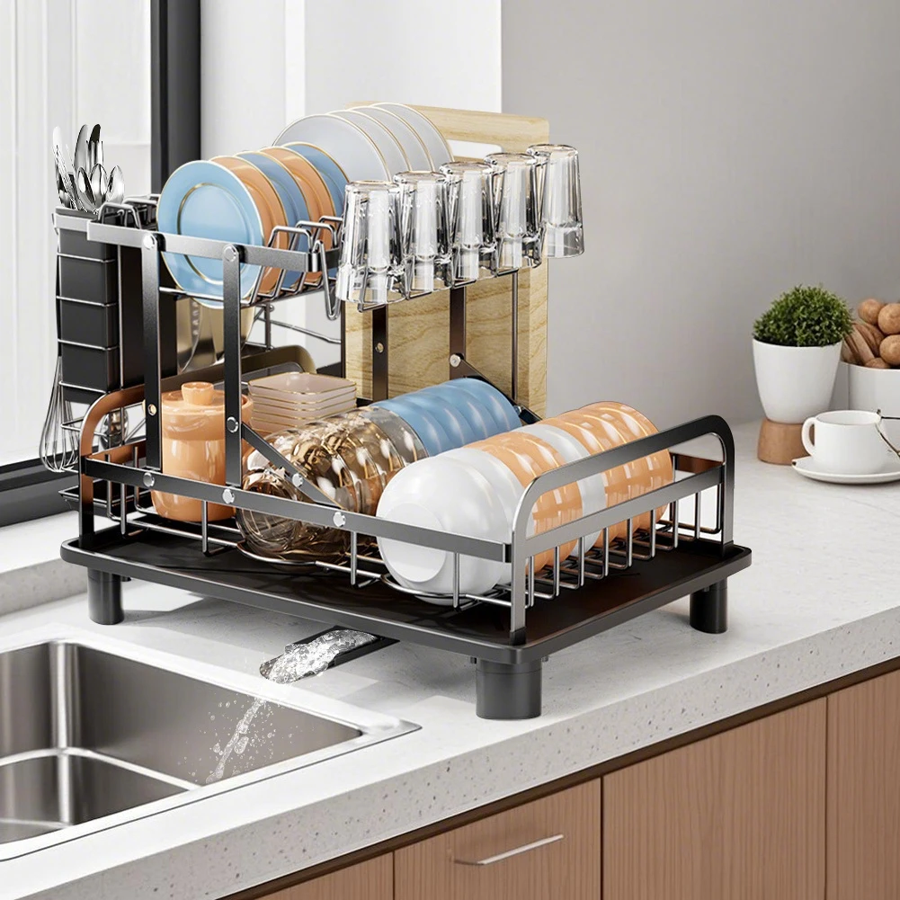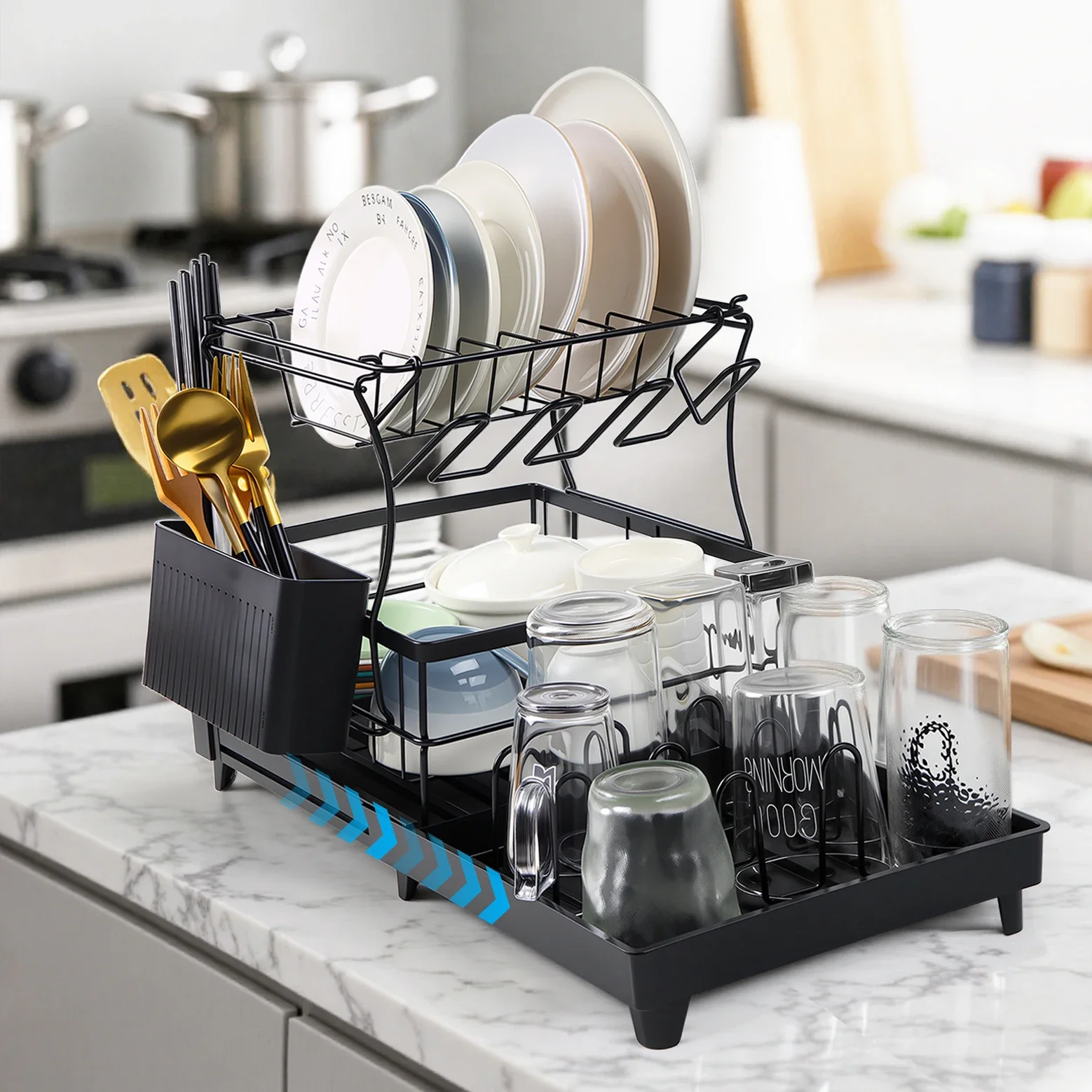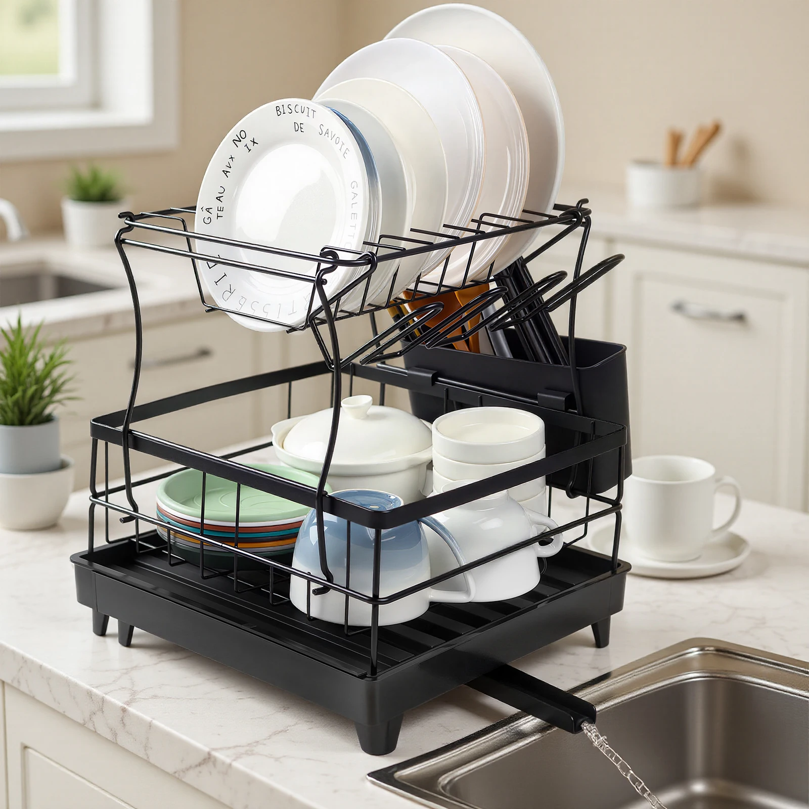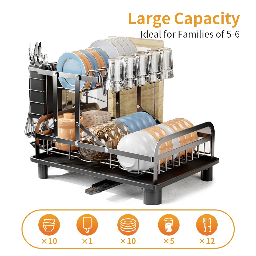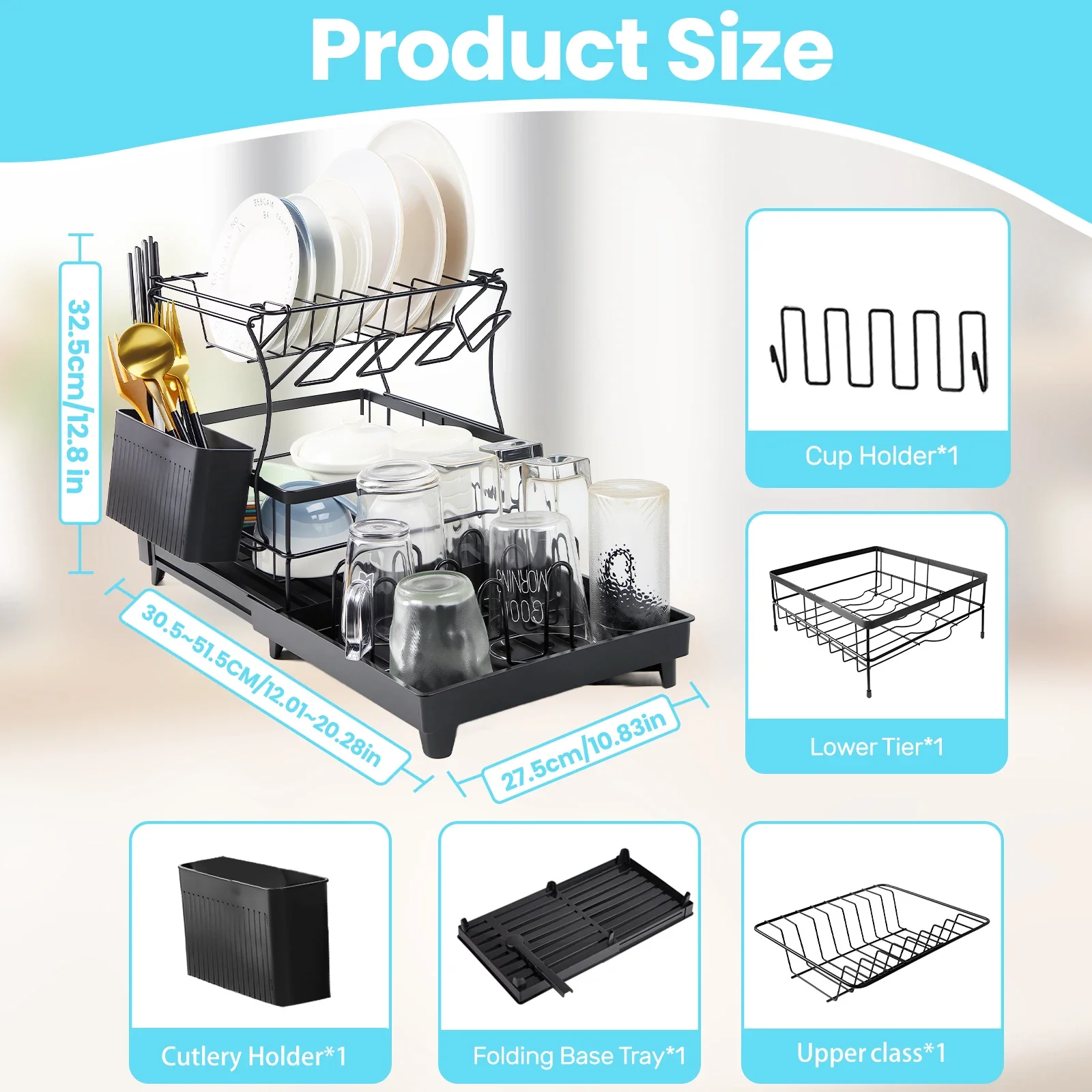 Large Capacity 2-Tier Design: This drying rack for kitchen counter take a detachable 2-tier design, easily accommodating various kitchen essentials.