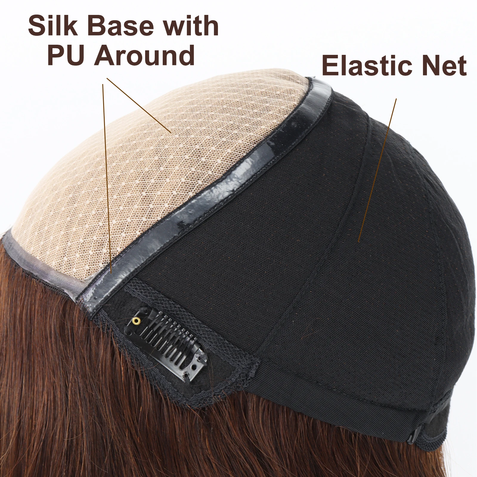 Layer Human Hair Wig for Women 6×6" Silk Base Wig with PU Around Medium Brown Hair Wig with Elastic Net Soft Breathable