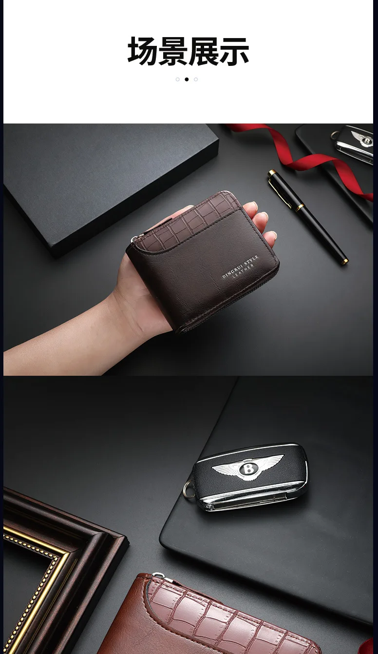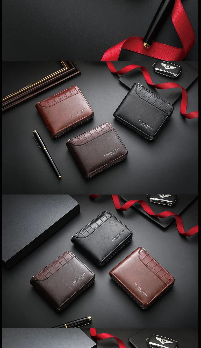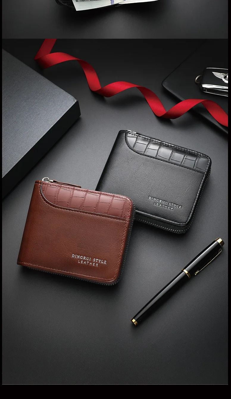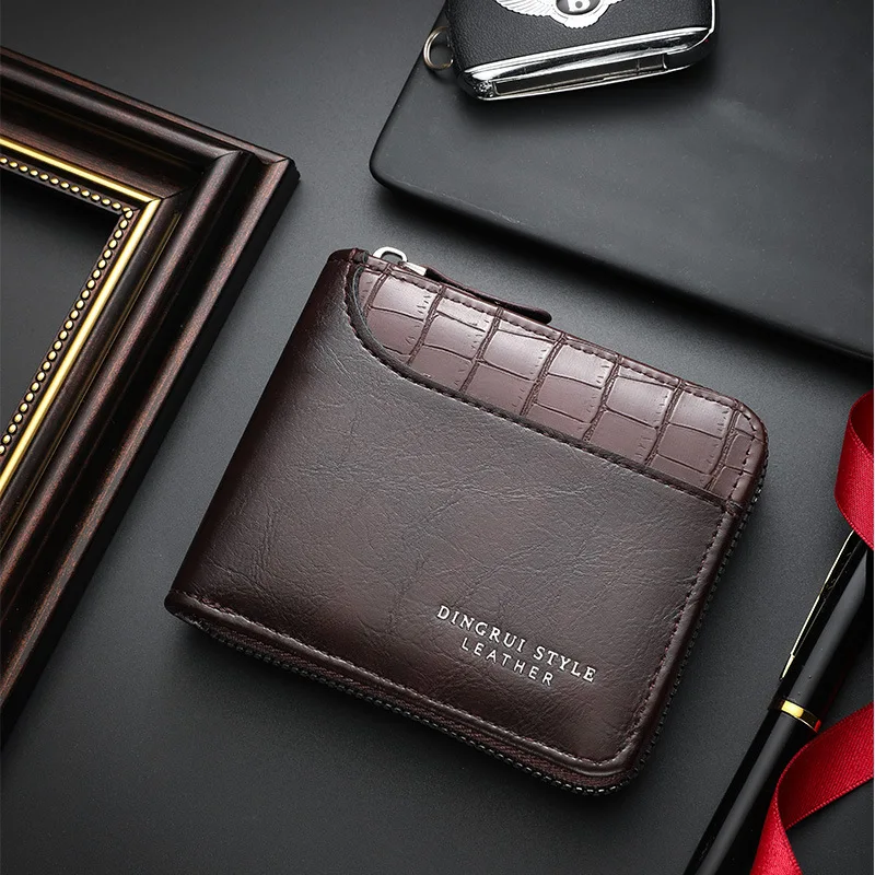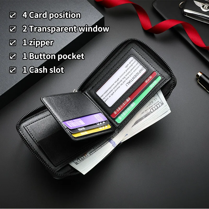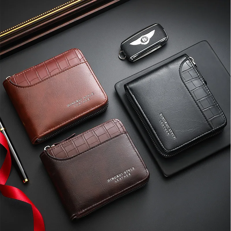Leather Men’s Wallet Luxury Mens Purse Male Zipper Card Holders with Coin Pocket Rfid Wallets Gifts Men Money Bag Birthday Gifts