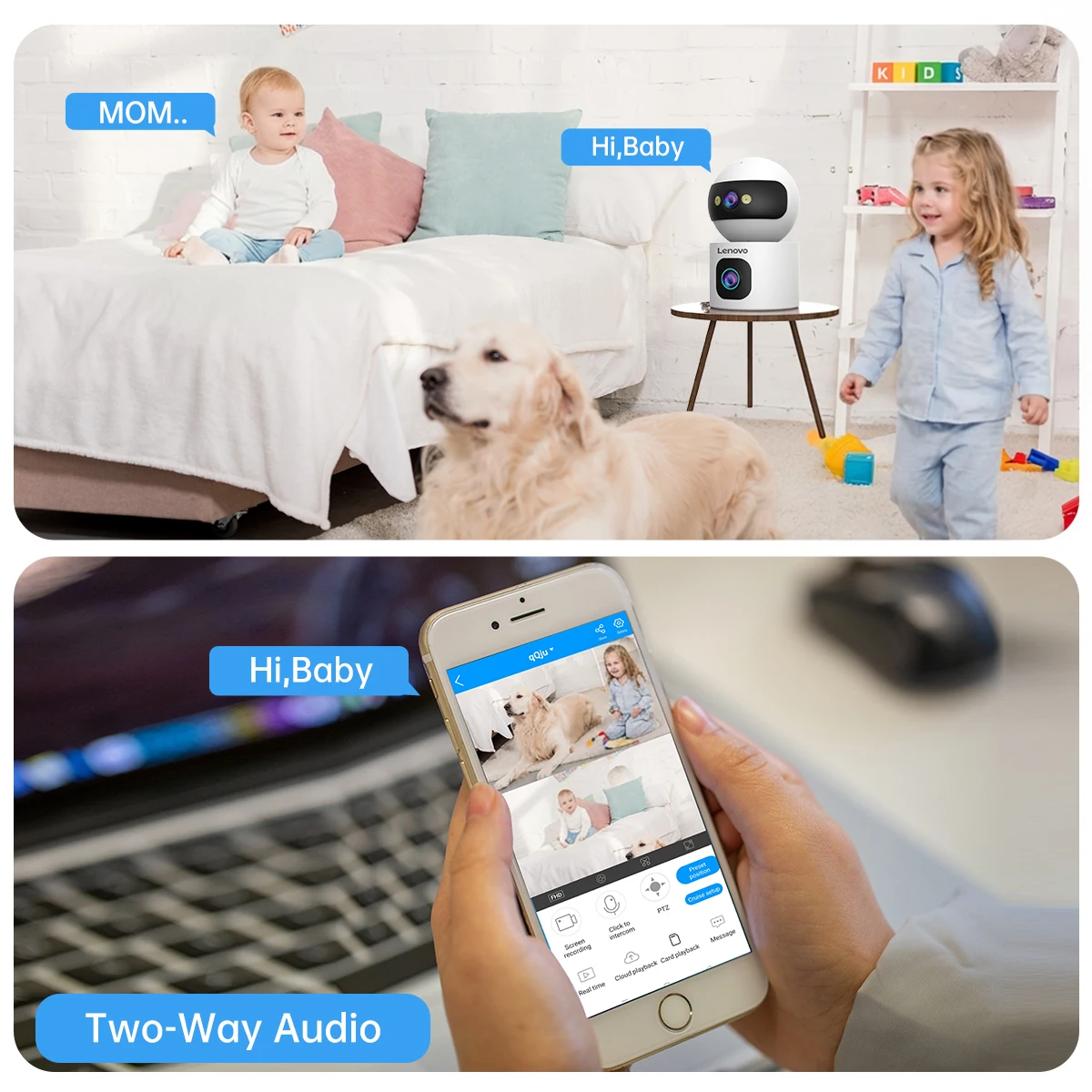 *Built-in high-quality speaker and microphone,two-way video synchronous recording and playback.