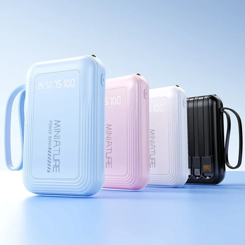 Lenovo Mini 500000mah Powerbank Super Fast Charging Led Digital Display 4 In 1 Built In Cables Power Bank For Iphone Samsung