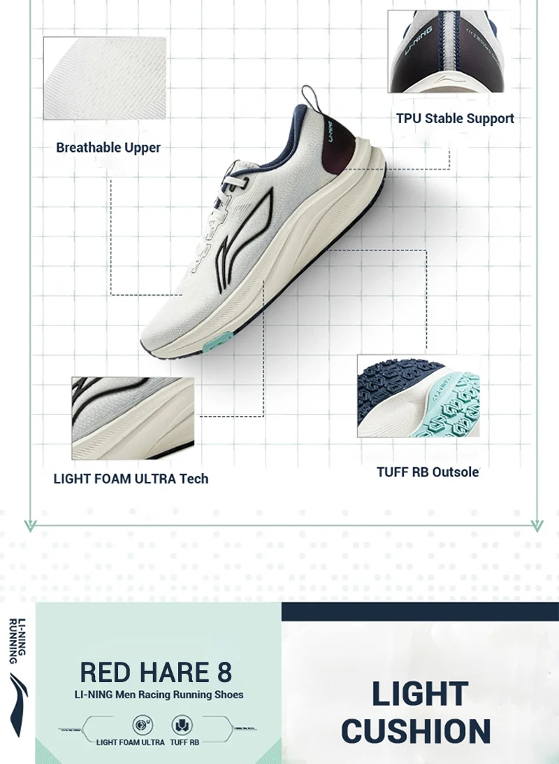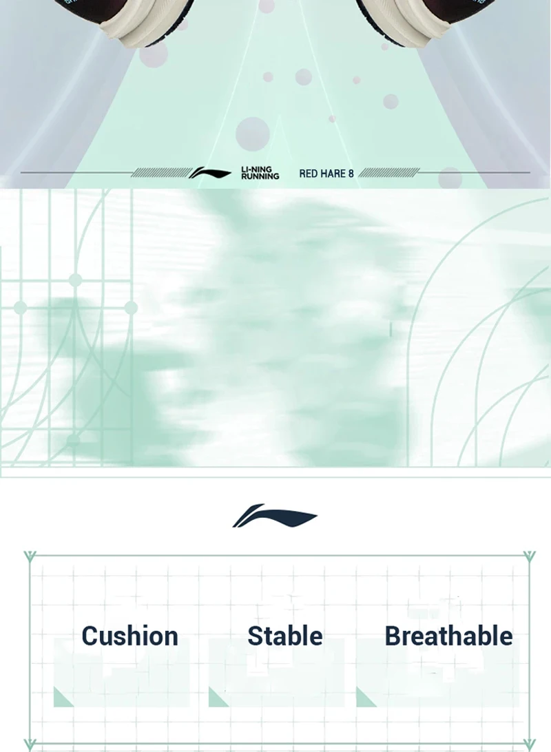 LIGHT FOAM : LIGHT FOAM is a new type of midsole technology that uses high-performance olefin copolymers to replace traditional EVA materials. It is also equipped with Li Ning’s newly developed special polymer foaming and bridging system. In addition to enhancing the mechanical strength of the foam cell wall, it can make the foam cells of the polymer more delicate and uniform, thereby reducing density, reducing the weight of the midsole, and improving its elasticity and durability.