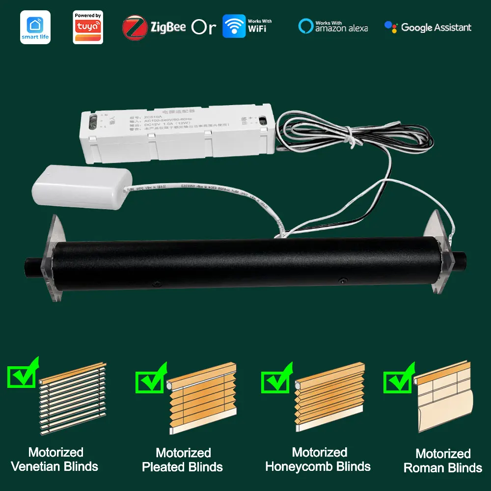 Tuya WiFi or ZigBee Smart Curtains Electric Blind Motor Remote Control For Pleated Honeycomb Roman Shade Blinds Alexa Google Home