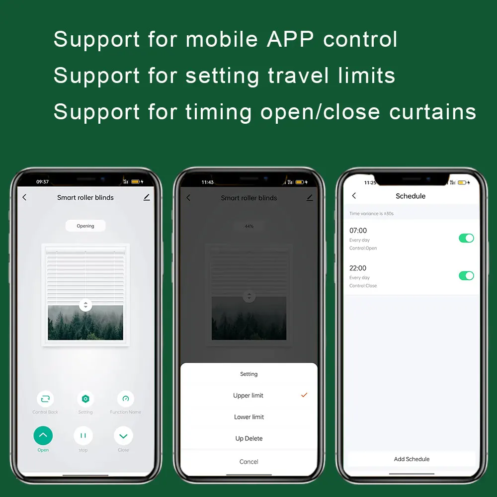 4. The curtains can be opened/closed regularly on the mobile phone APP.