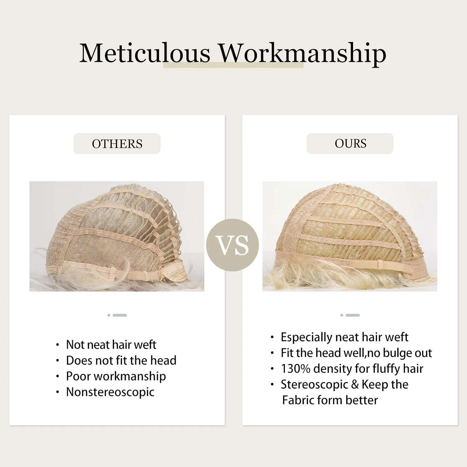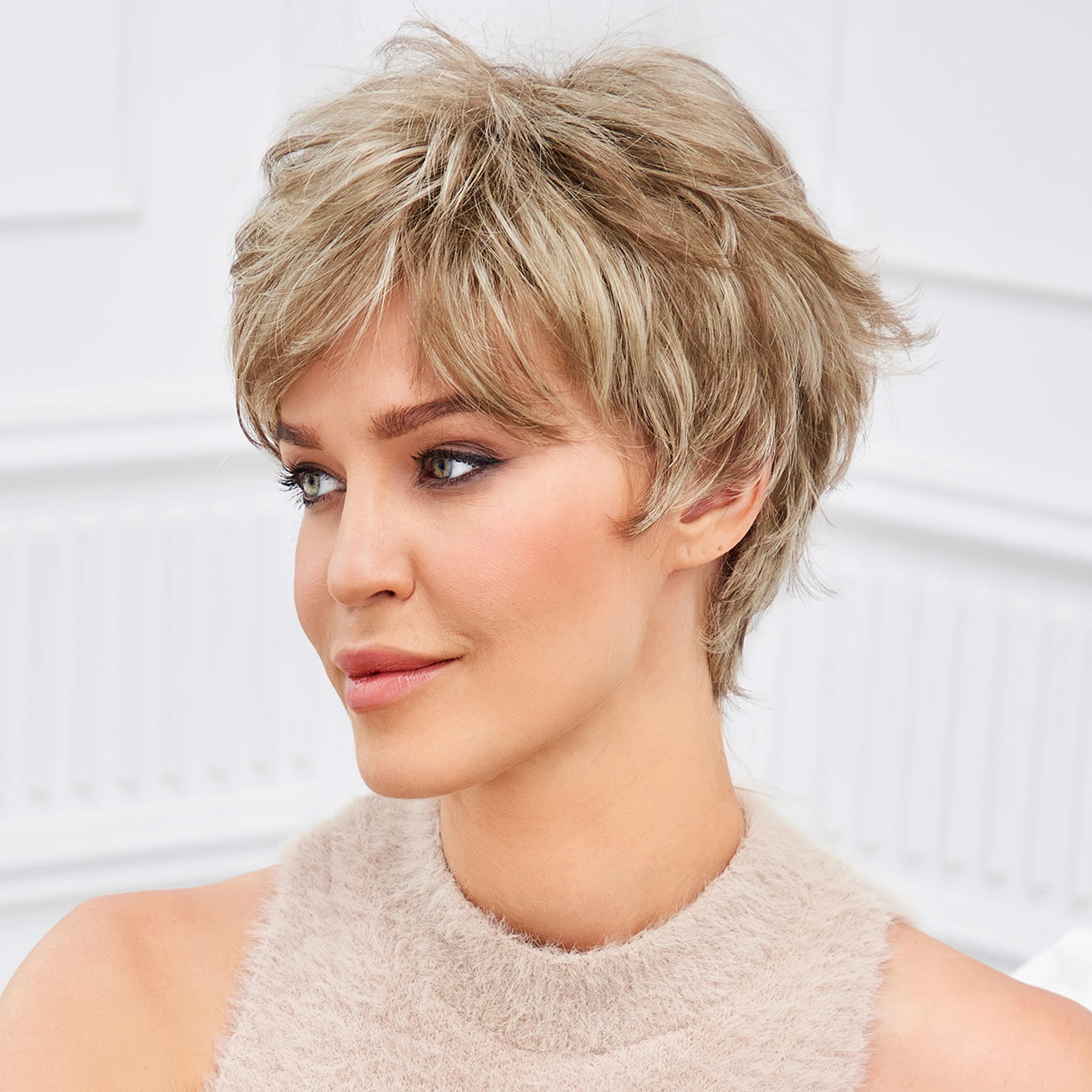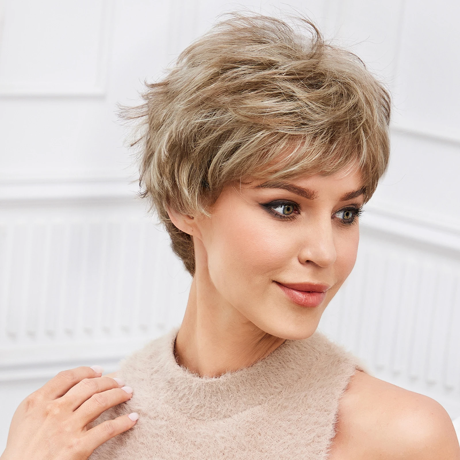 The color actually looks real. Easy to fix and style. Shake it up before the putting it on each day, and then brush it like the pictures show. You can then just make it piece -y by picking up little sections to arrange it so that it is deliberately a little messy. Got lots of compliments from people who were so surprised when i told them 1.) It was a wig, and 2.) It was super inexpensive! !