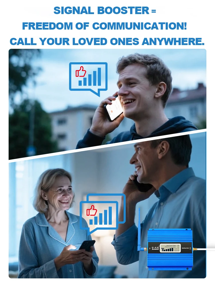 Note:Ensure outdoor signal should be more than 3 bars (-90dB) before you buy, so that repeater can work well. If you can get clear voice on your balcony or besides windows, it means your outdoor signal is strong enough.