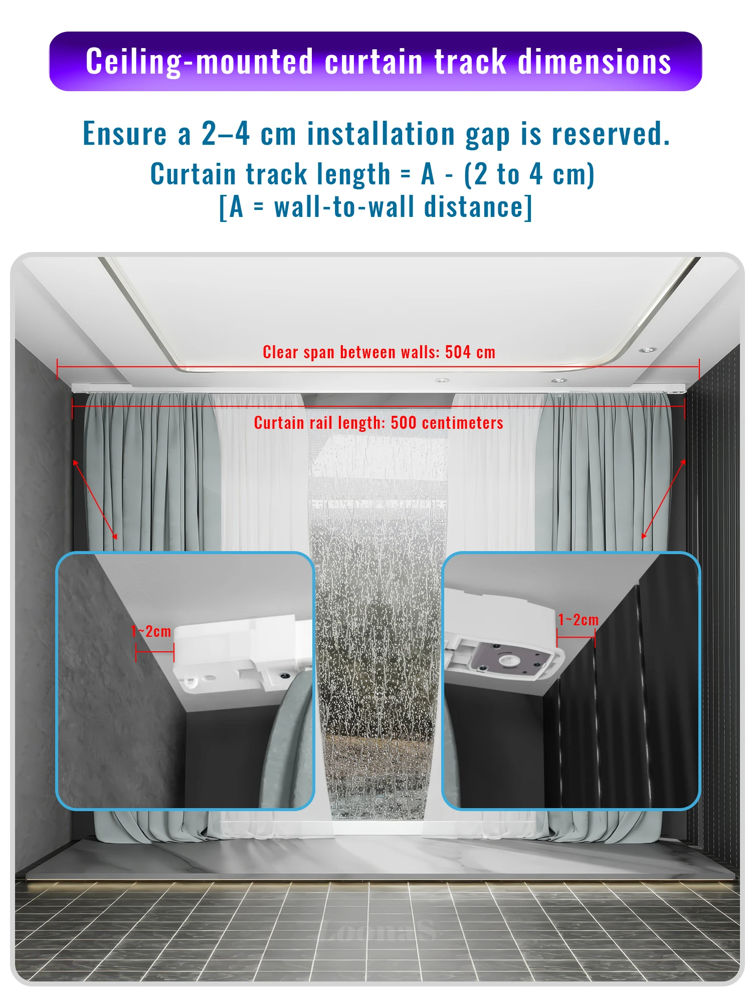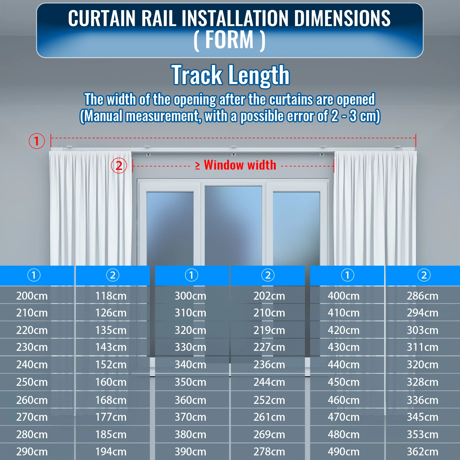 1. Best for Modern Homes: Full-wall panels, track length should be 4cm SHORTER than wall-to-wall width (2cm clearance per side). (e.g. 324 – 4cm = 320cm)