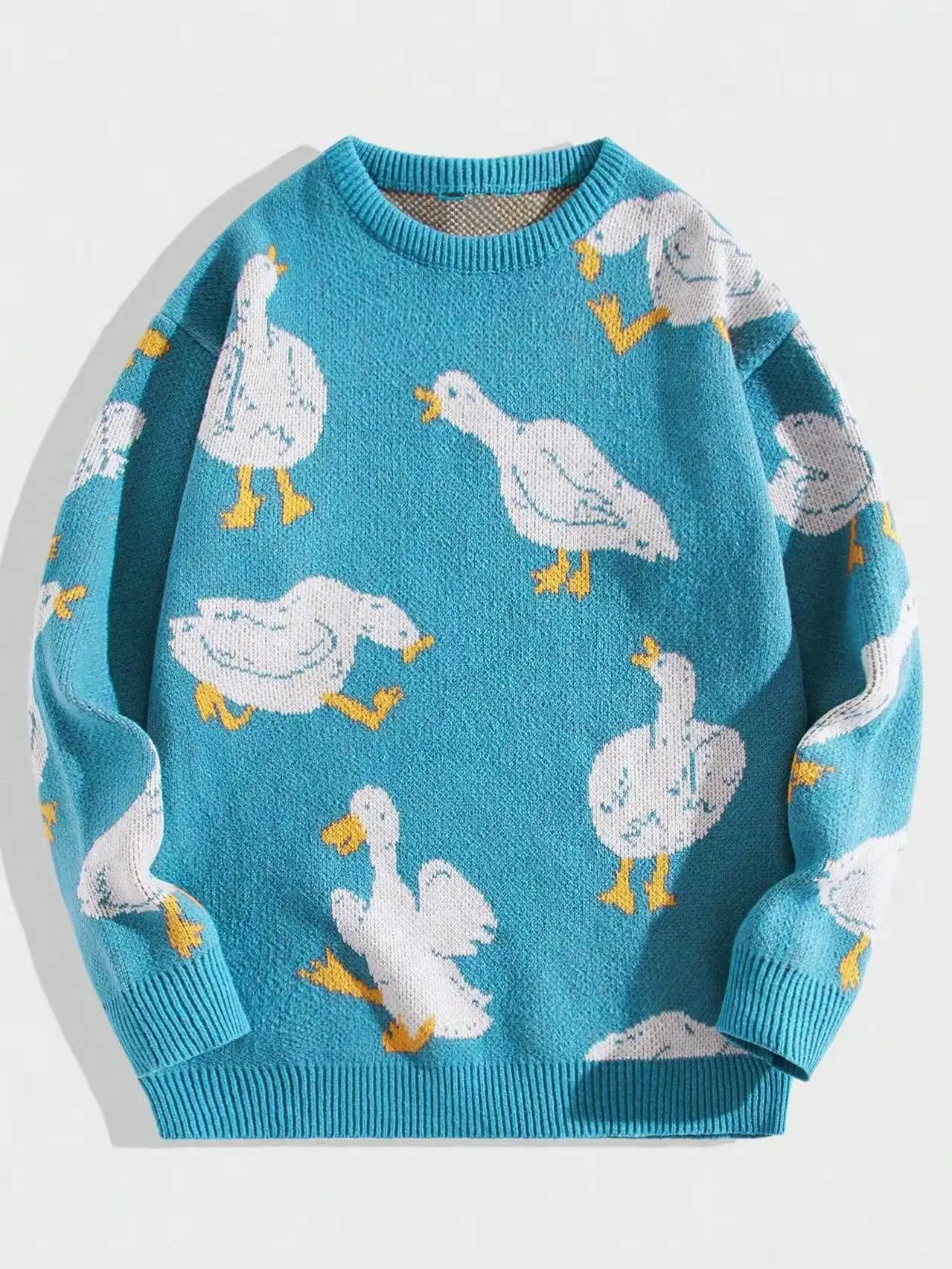 The sweater boasts an eye-catching animal pattern, adding a touch of playful charm to your wardrobe.