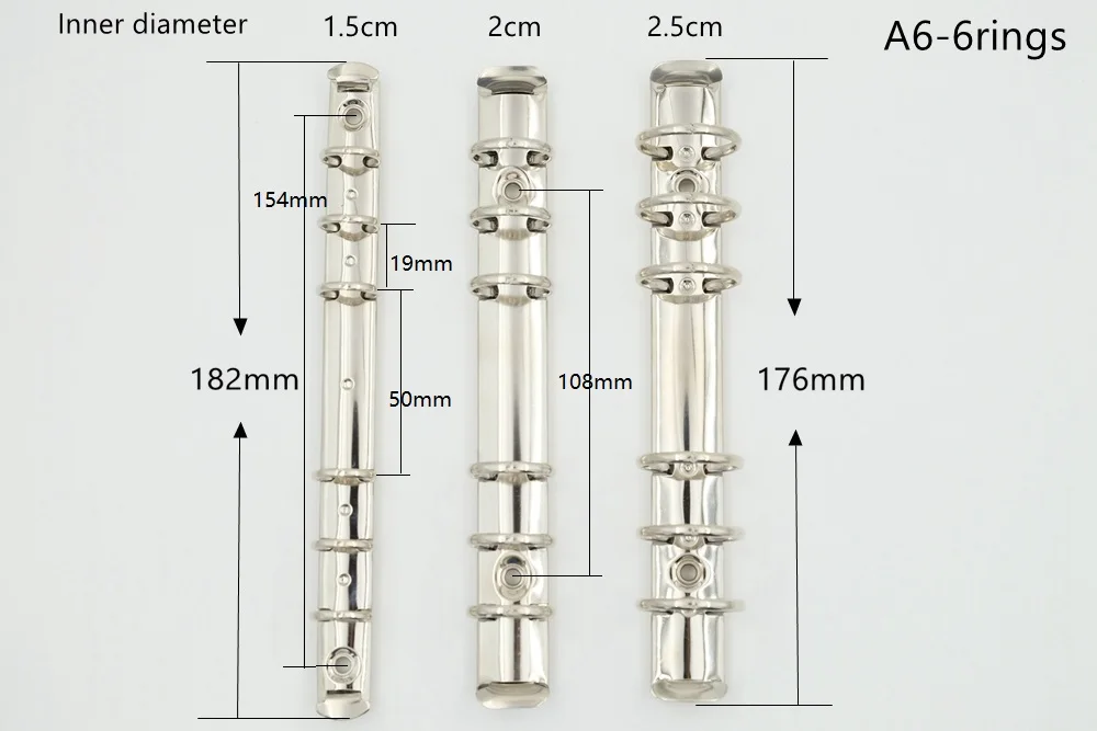 A5 – 6 rings 1.5cm/2cm/2.5cm/3cm diameter