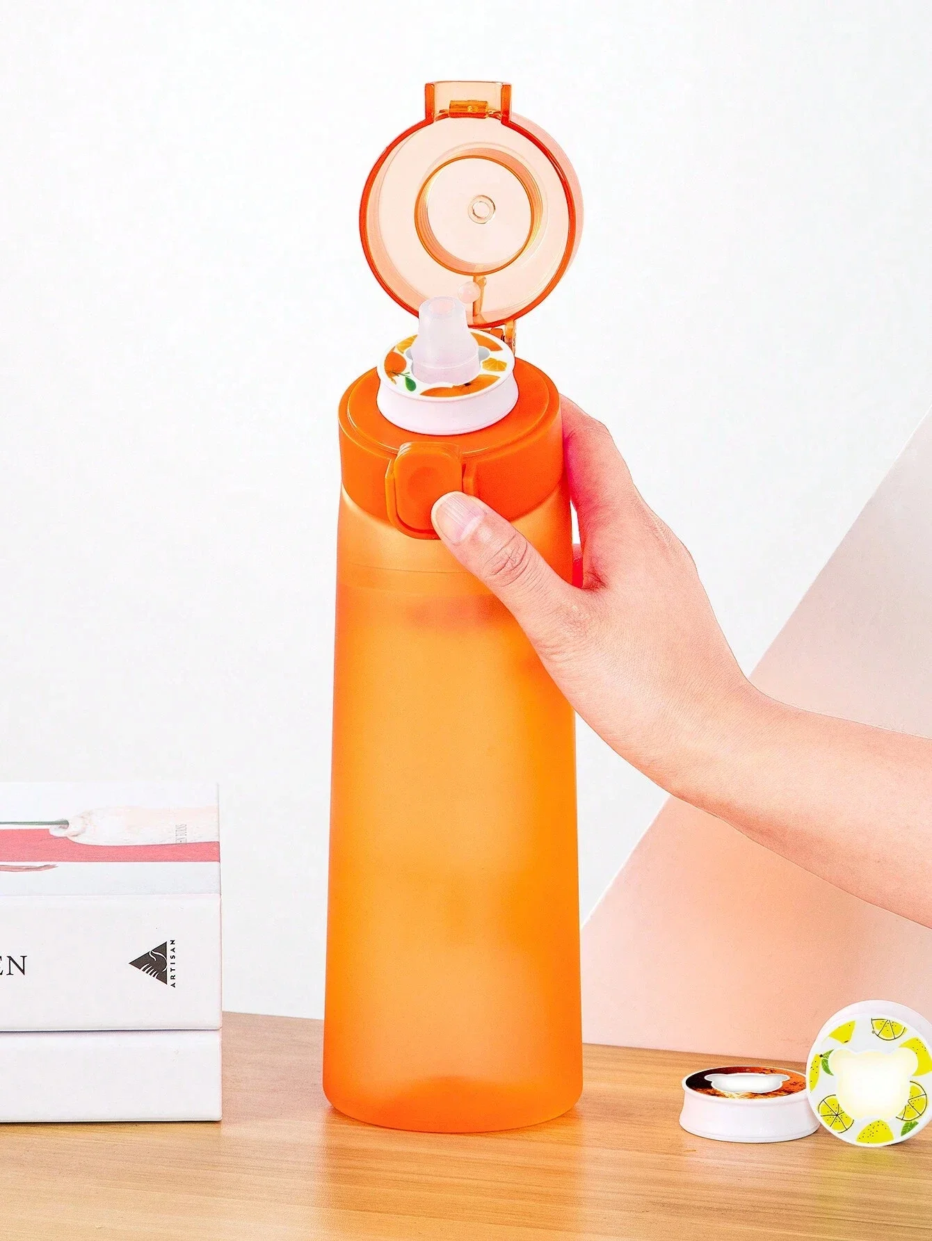 3.One-Press Flip Top Lid: Equipped with a user-friendly one-press flip top lid, our scent flavored water bottle allows you to quickly open the lid and enjoy a drink without the hassle of unscrewing the cap. Simply press the button and quench your thirst instantly, providing you with a more convenient and efficient way to hydrate.