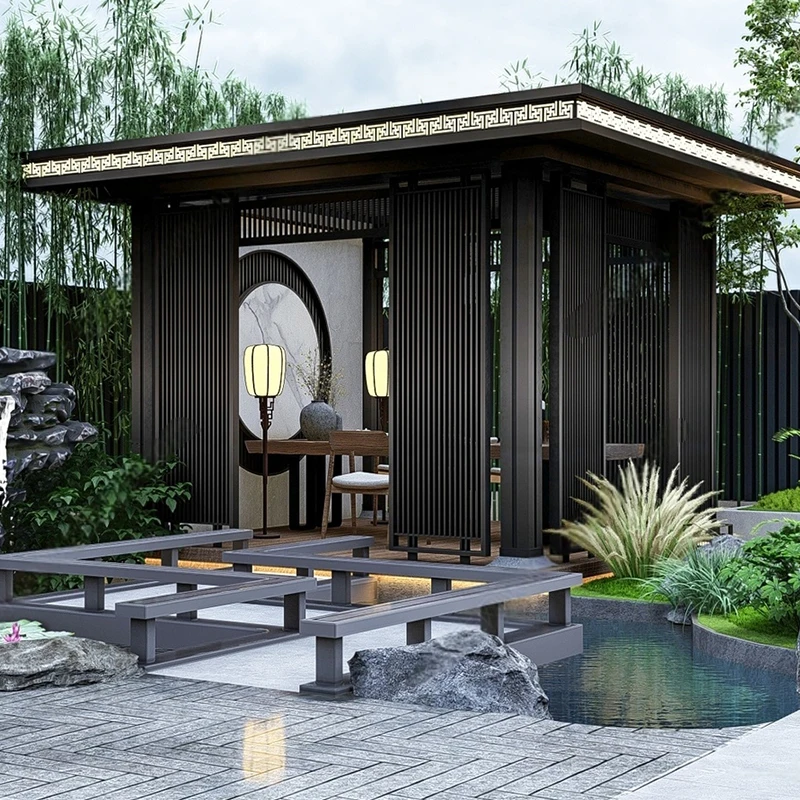 Gazebo style can be customized with spire gazebo or flat roof gazebo.