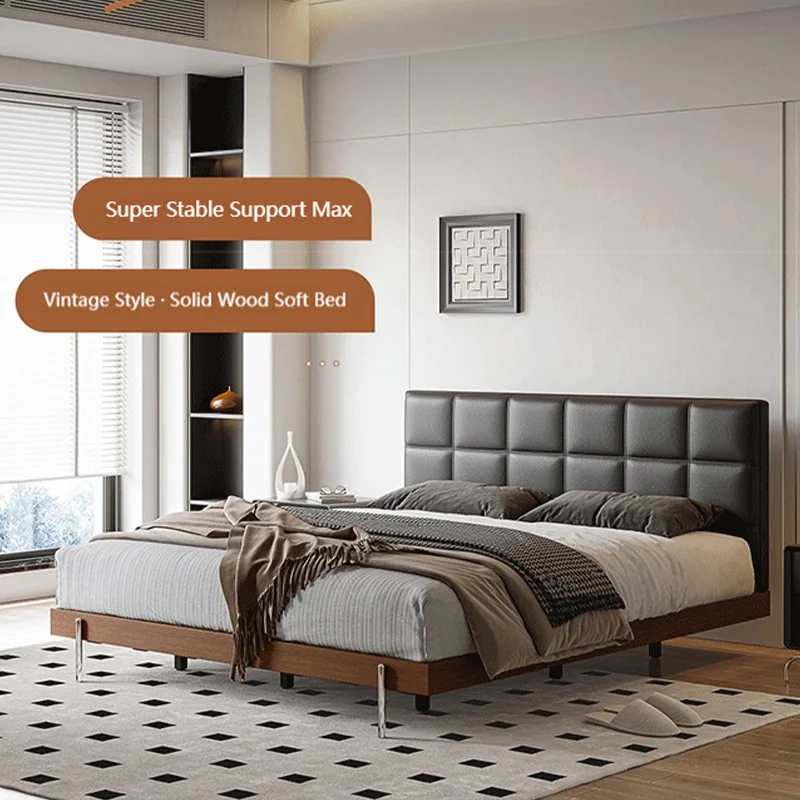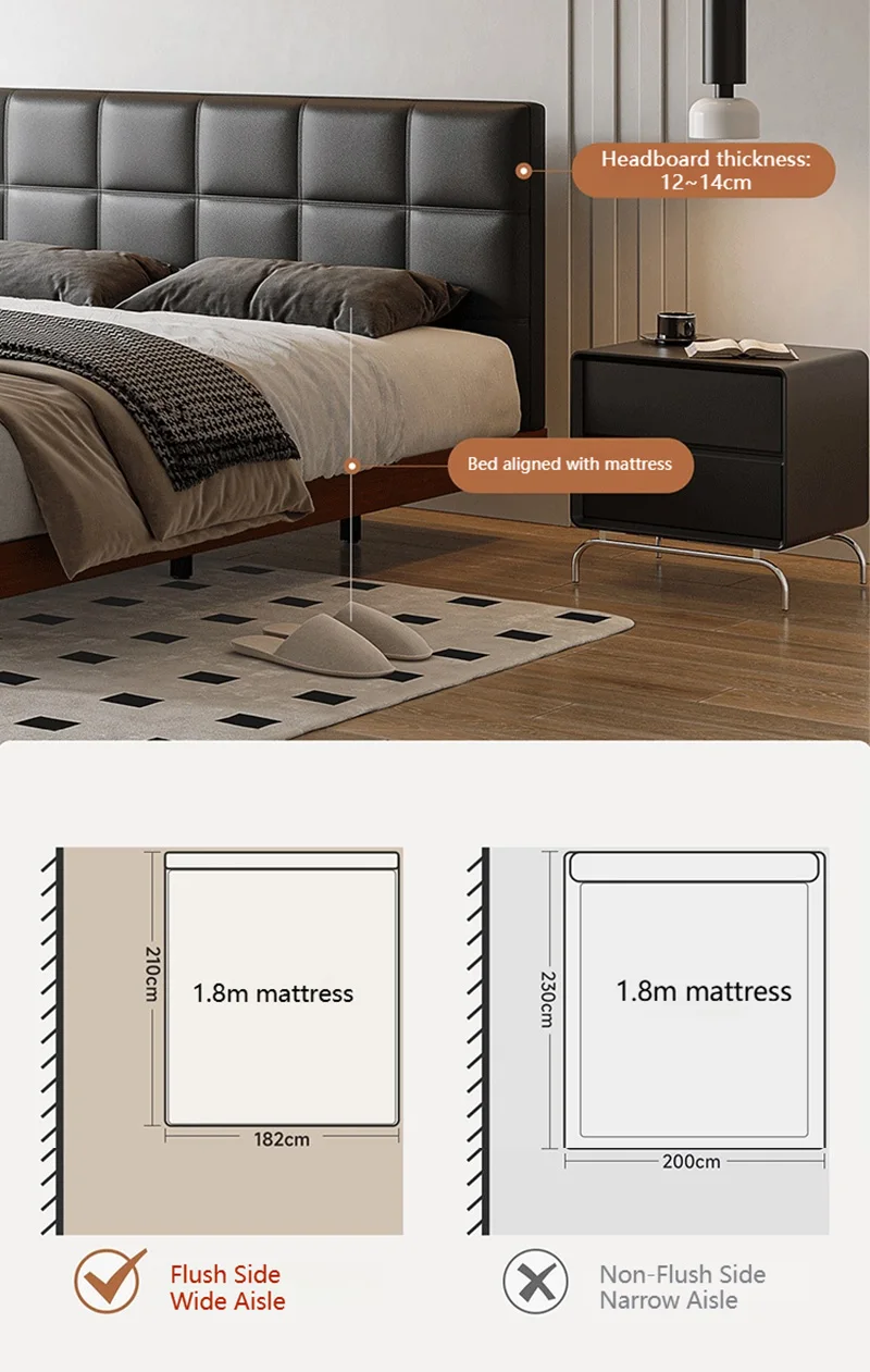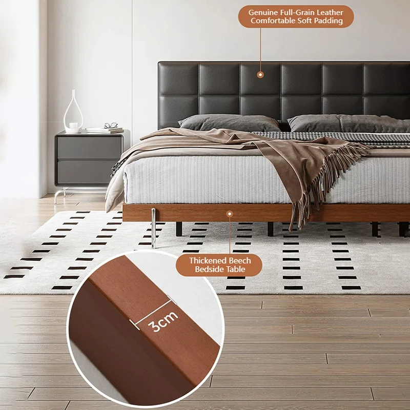 Leather Headboard: The headboard is made from thick, high-quality first-layer cowhide, providing a soft and smooth texture that is also easy to clean.