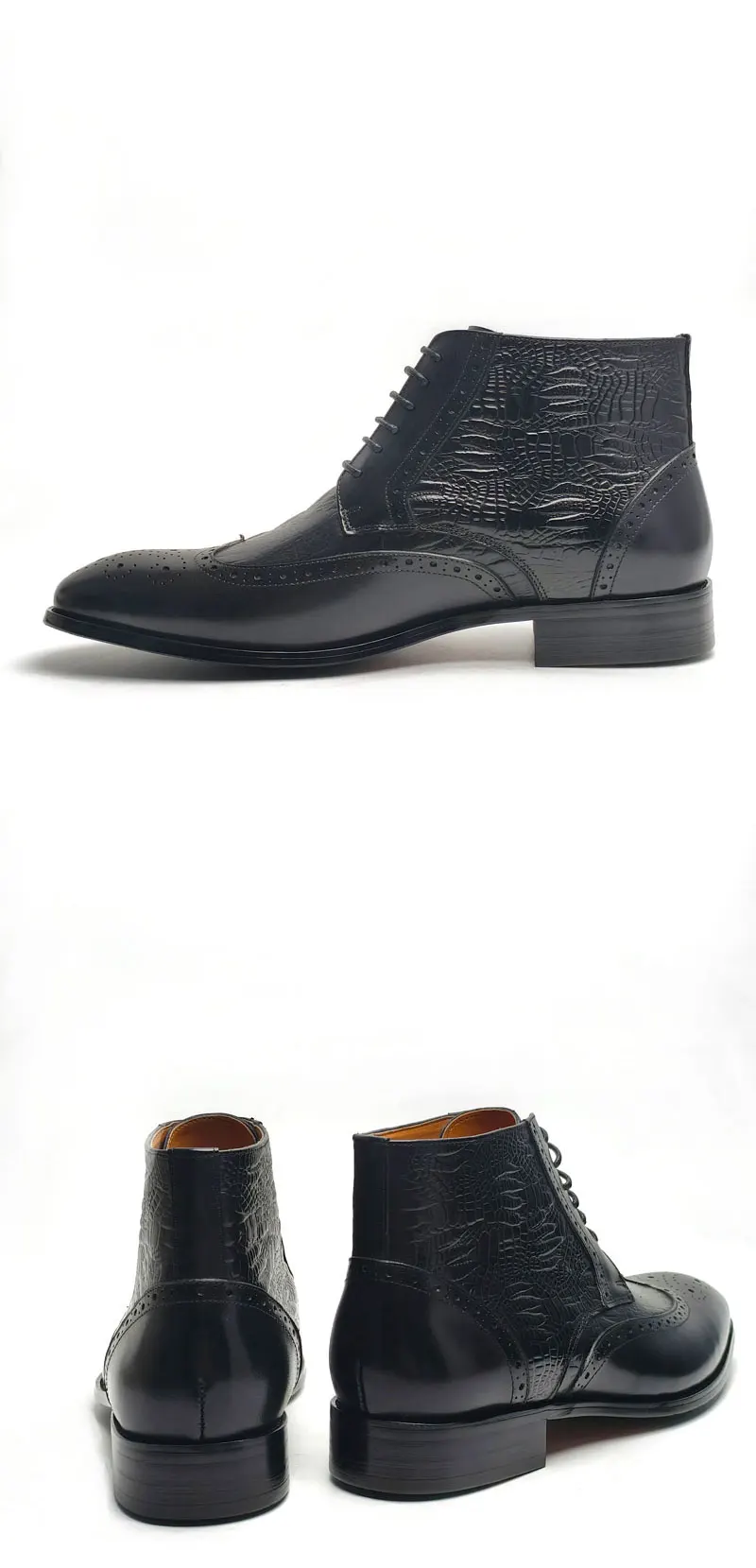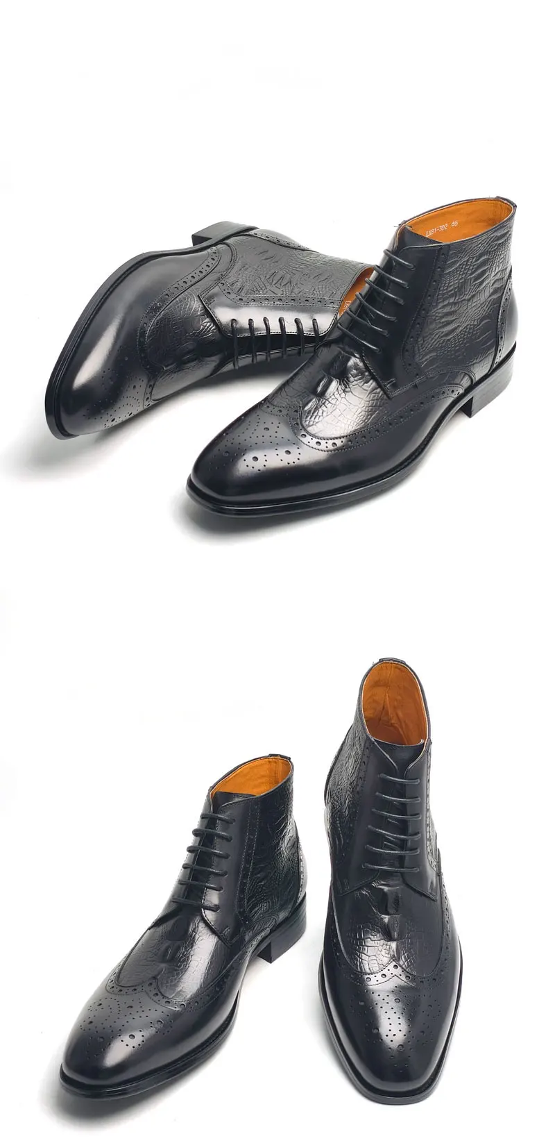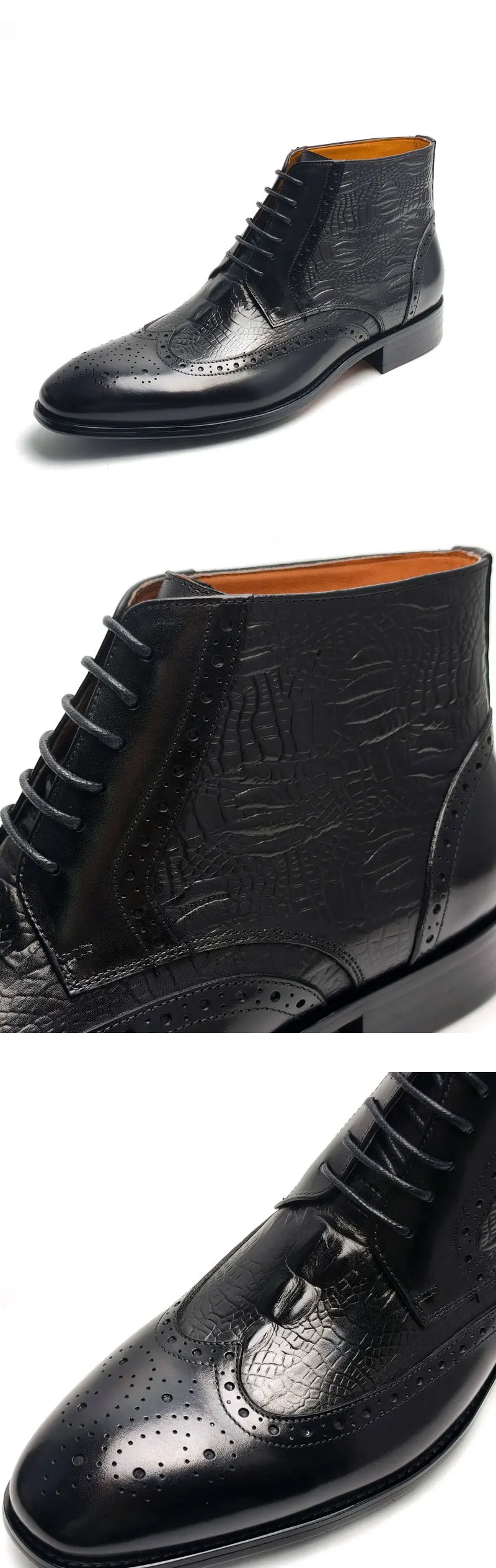 Luxury Business Boots For Men Comfortable Lace Up Top Cow Leather Handmade Retro Printing Shoes Fast Delivery Black Fashion Boot