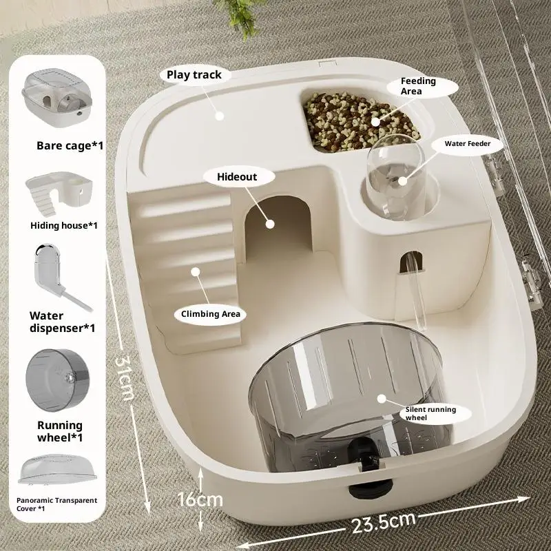 4. Fully equipped: The hamster cages we supply are equipped with all the necessary facilities for hamster life, such as exercise wheels, water dispensers, food bowls, sleeping rooms, etc., without the need for additional equipment, saving time and effort.