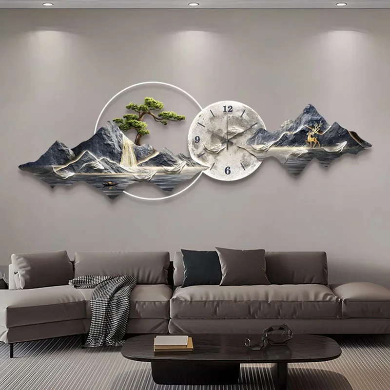 The landscape-themed decorative clock is of an extremely suitable size. the picture is three-dimensional with distinct layers. under the light, the gilded patterns are extremely beautiful, and it perfectly matches my new chinese-style decoration.