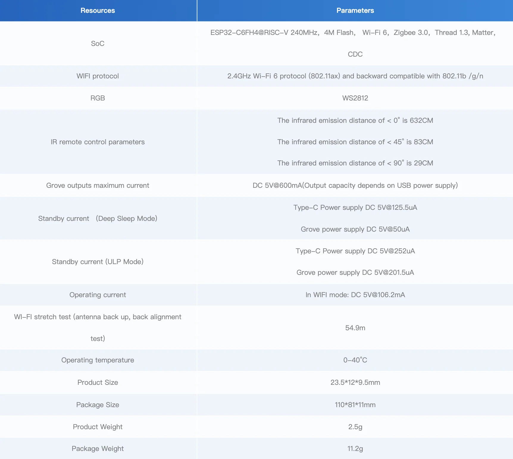 The M5NanoC6 combines advanced wireless capabilities with customizable visual effects and infrared control. The built-in RGB beads allow for personalized lighting, while the infrared emitter provides extensive control range. The Grove interface adds flexibility for integrating various sensors and devices, making the M5NanoC6 a powerful and adaptable tool for diverse applications.