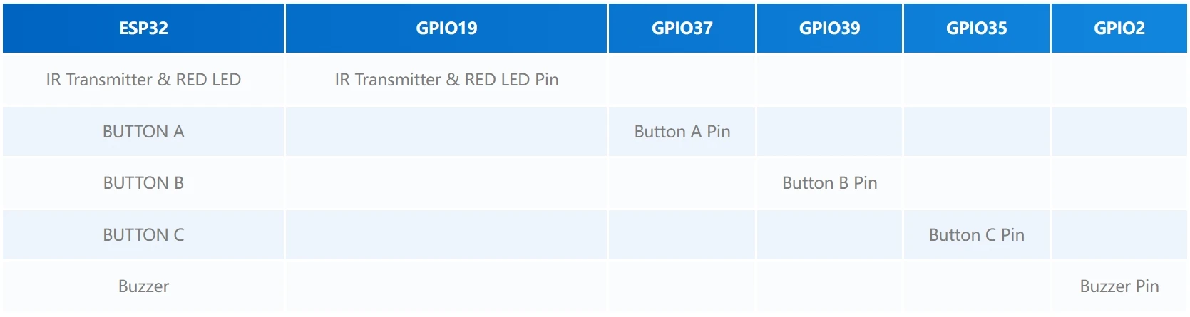 RED LED & IR Transmitter & BUTTON A & BUTTON B & Buzzer