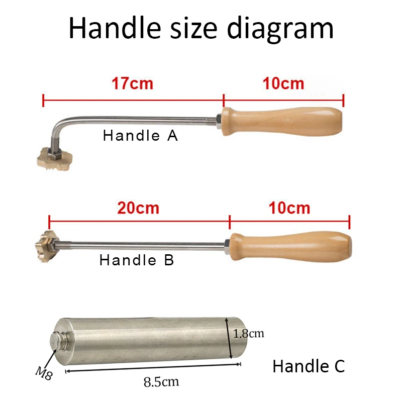 The specifications of the only stamp head do not include the handle
