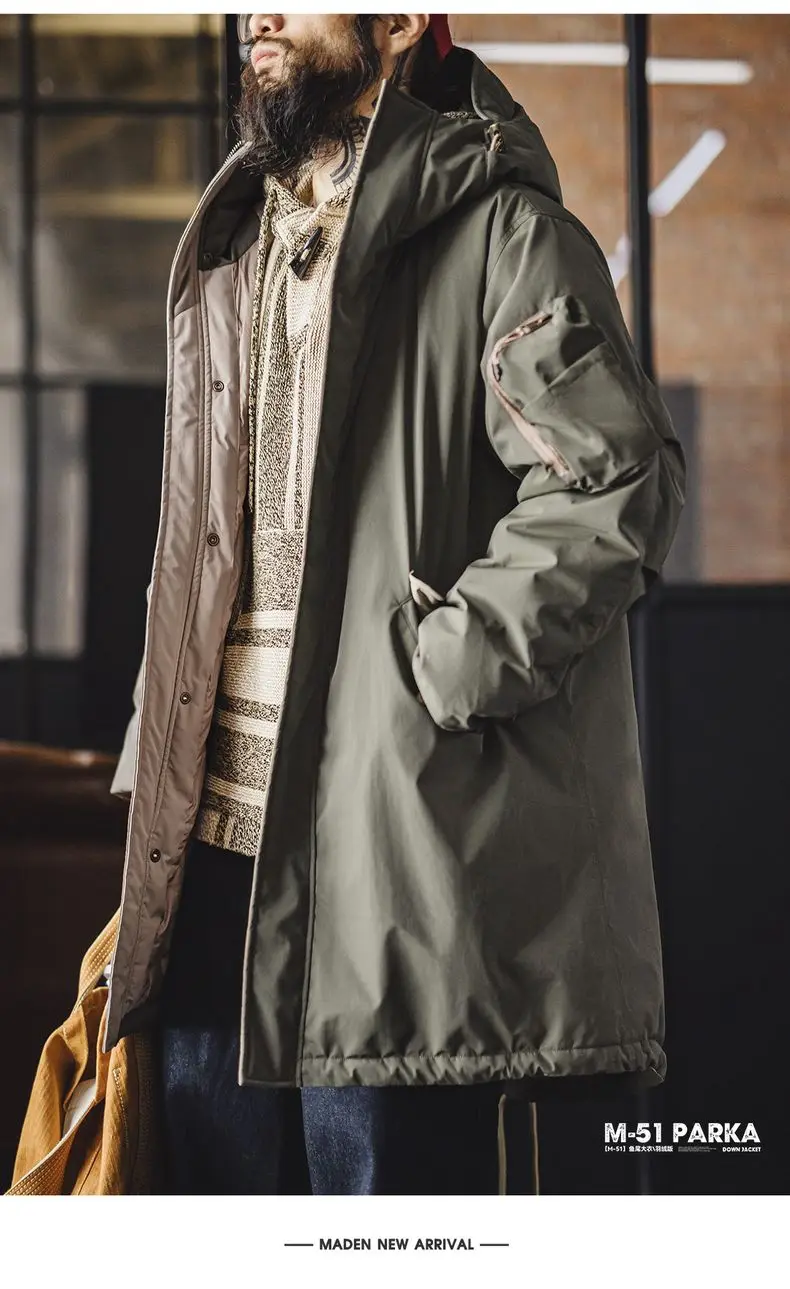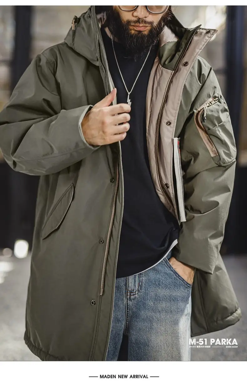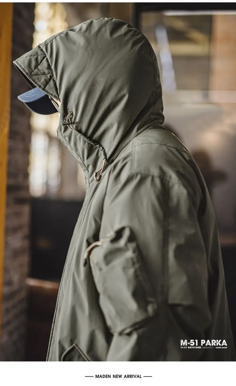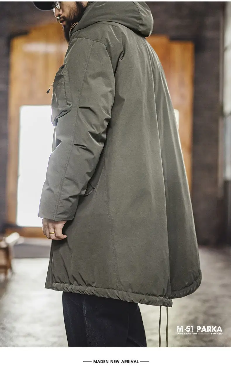 - Feature 10: Maden Vintage Men's M-51 Fishtail Parka Mid-Length White Duck Down Filling Jacket Water-Resistant Warm Trench Coat for Winter