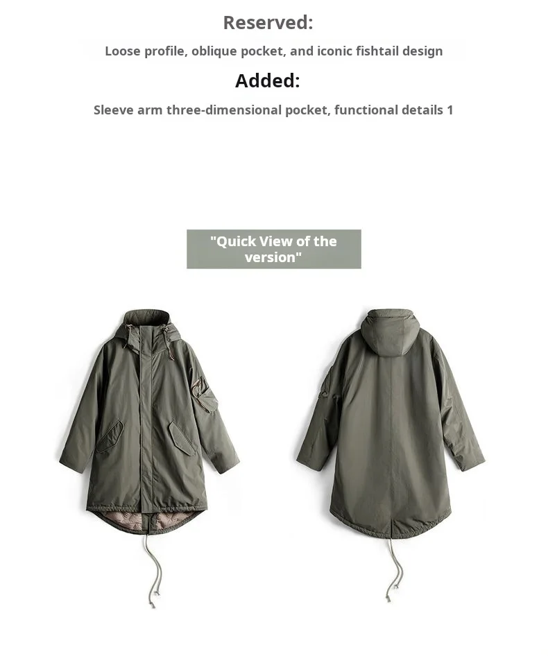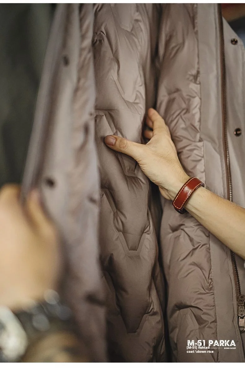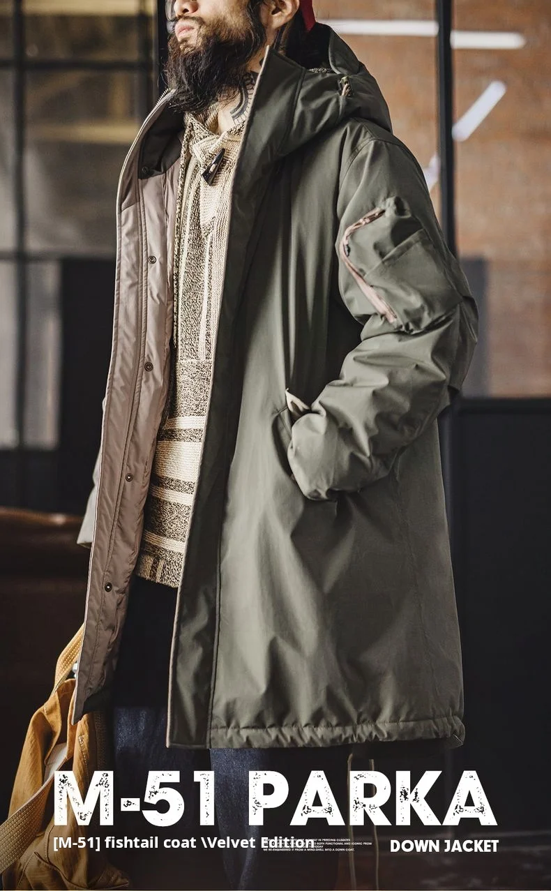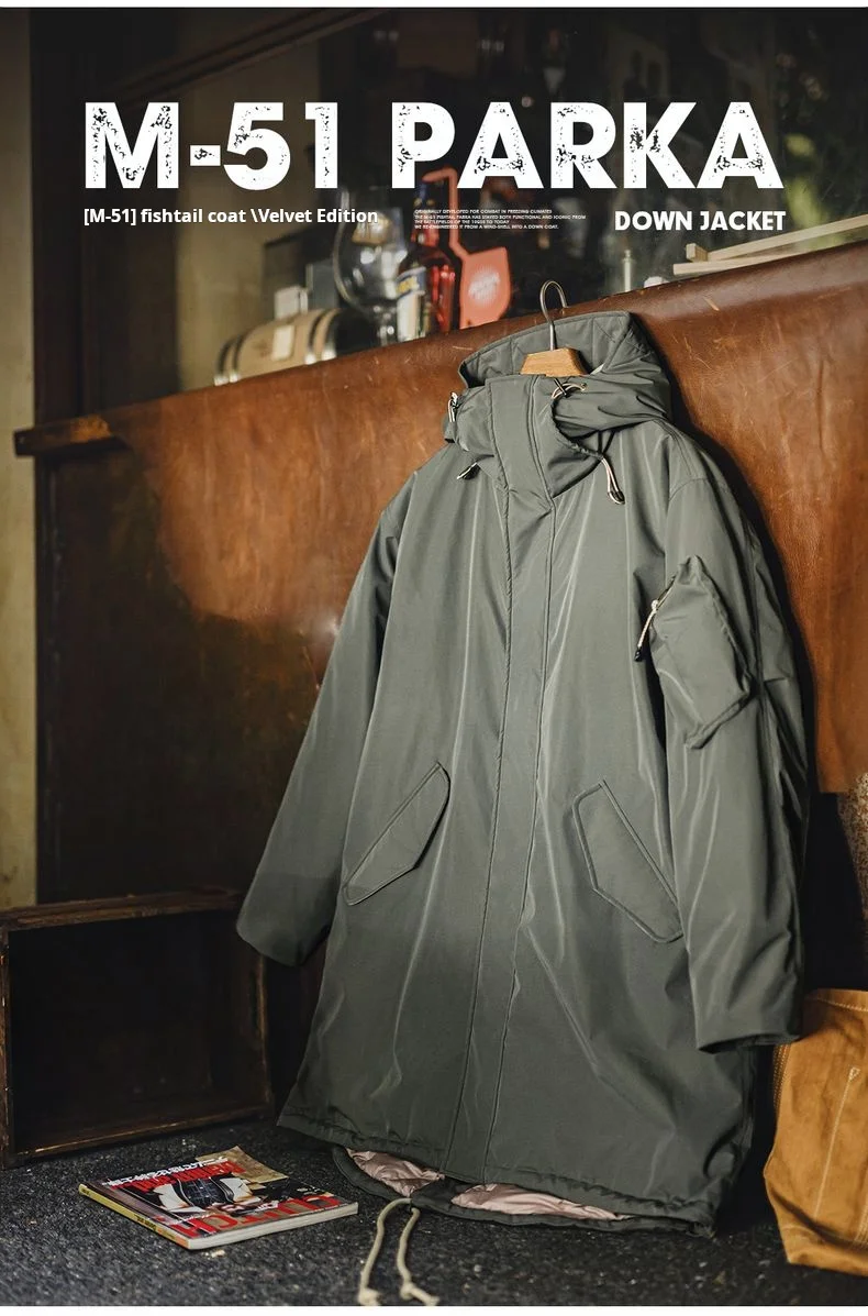 - Feature 10: Maden Vintage Men's M-51 Fishtail Parka Mid-Length White Duck Down Filling Jacket Water-Resistant Warm Trench Coat for Winter