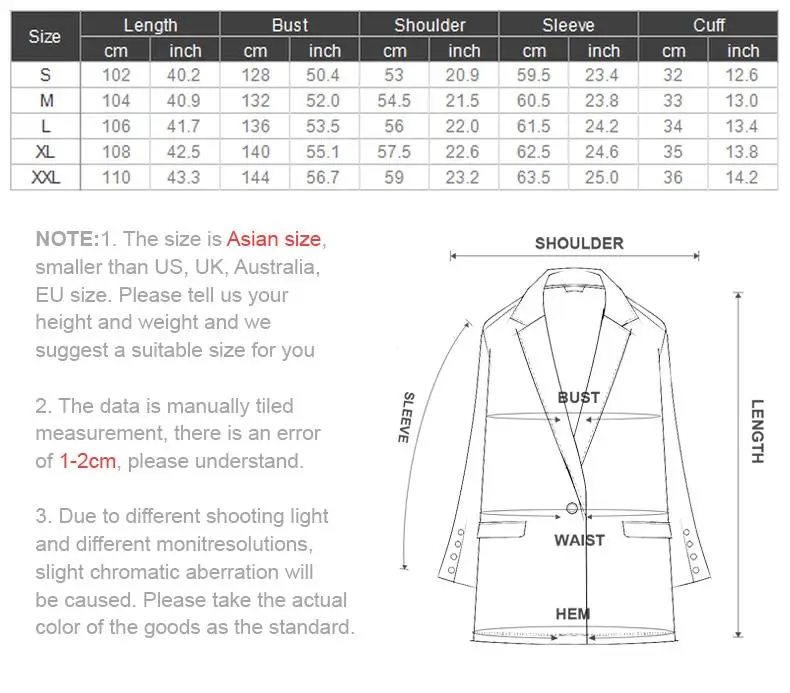 Please strictly follow the size chart to select the size. Do not select directly according to your habits. This is Asia Size, smaller than EU/US size. The size may have a 1-2cm difference due to manual measurement.