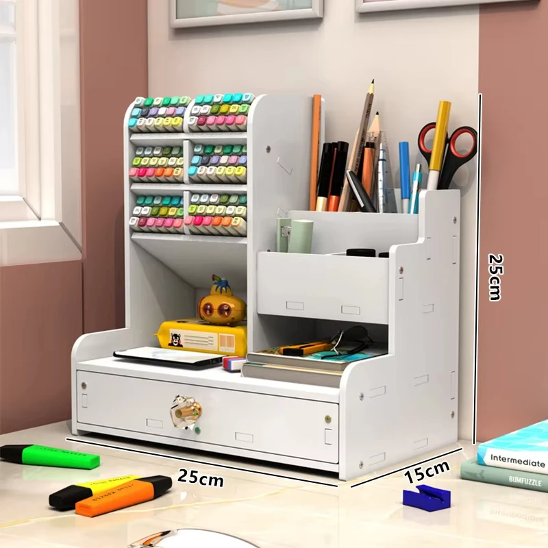Recommended, it’s made of wood and comes in a box completely disassembled, it’s easy to assemble, gives order to the desk, very nice.