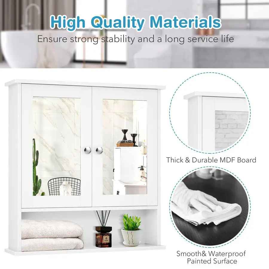 Robust Construction for Durability Constructed with highquality materials, this bathroom storage cabinet is designed for longlasting durability. Featuring magnetic catches for secure door closure and stylish metal knobs for easy access, this mirror wall cabinet ensures both functionality and aesthetics.