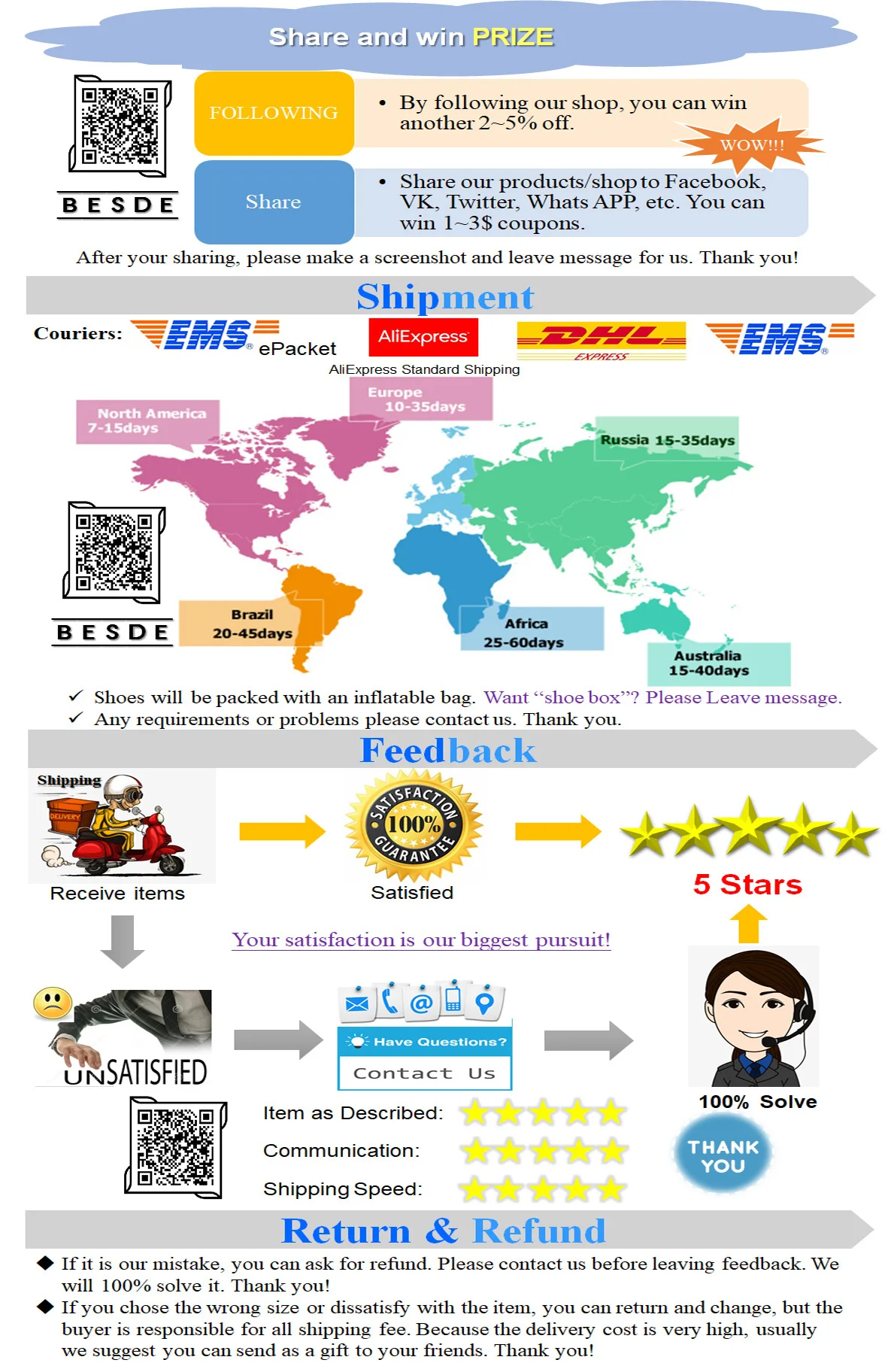 ②New shoes may come with a little smell,it will disappear after ventilation.