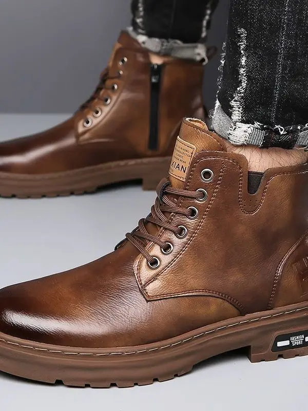 Crafted with PU and ultra-synthetic leather, these boots offer durability and comfort for daily wear.