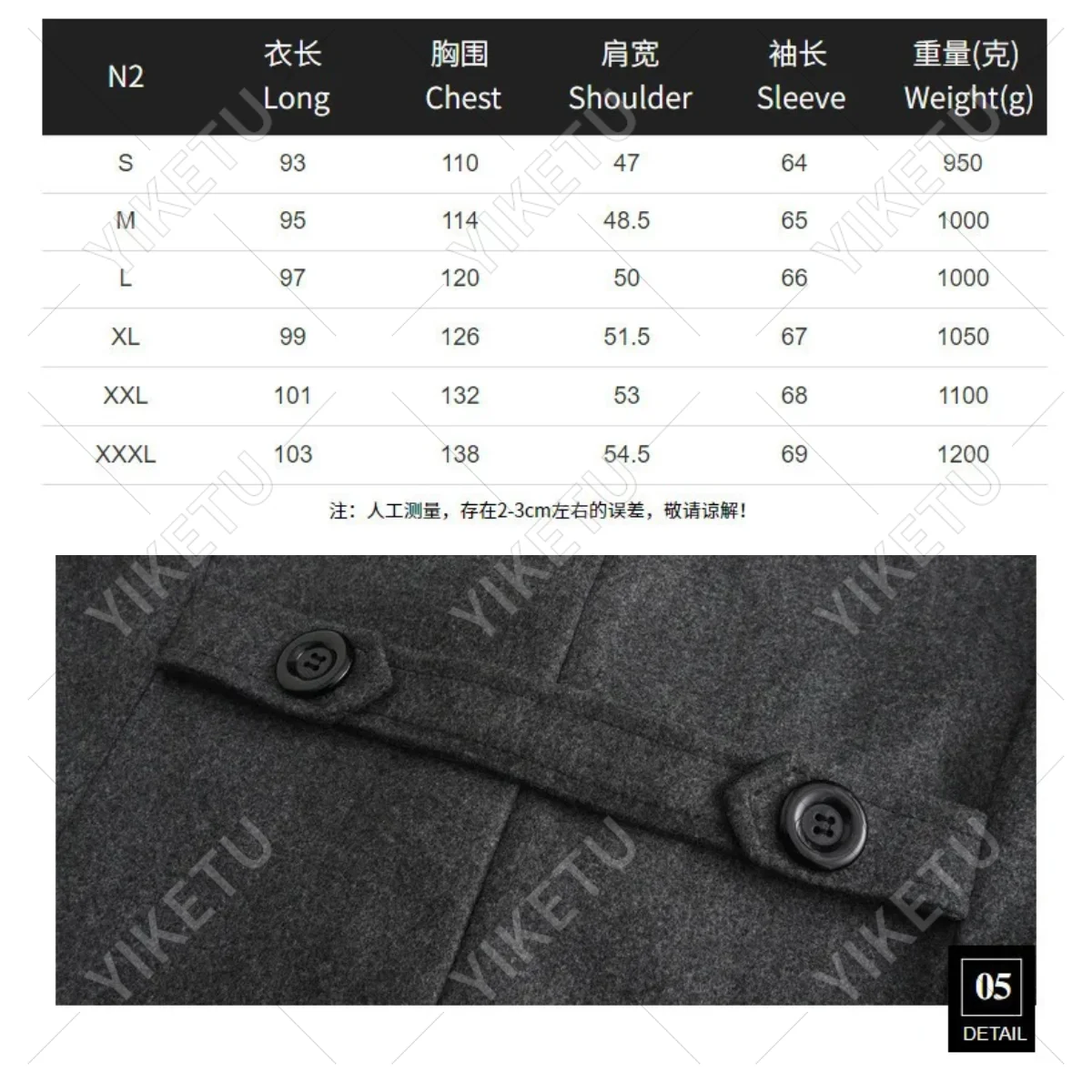 - Closure Type: Double Breasted