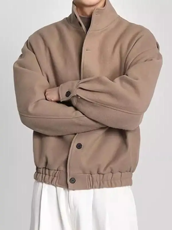Featuring a trendy stand-up collar and long sleeves, this jacket combines style with functionality.