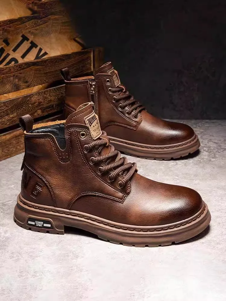 Featuring a British style with stitched detailing and a round toe, these boots blend fashion with functionality.