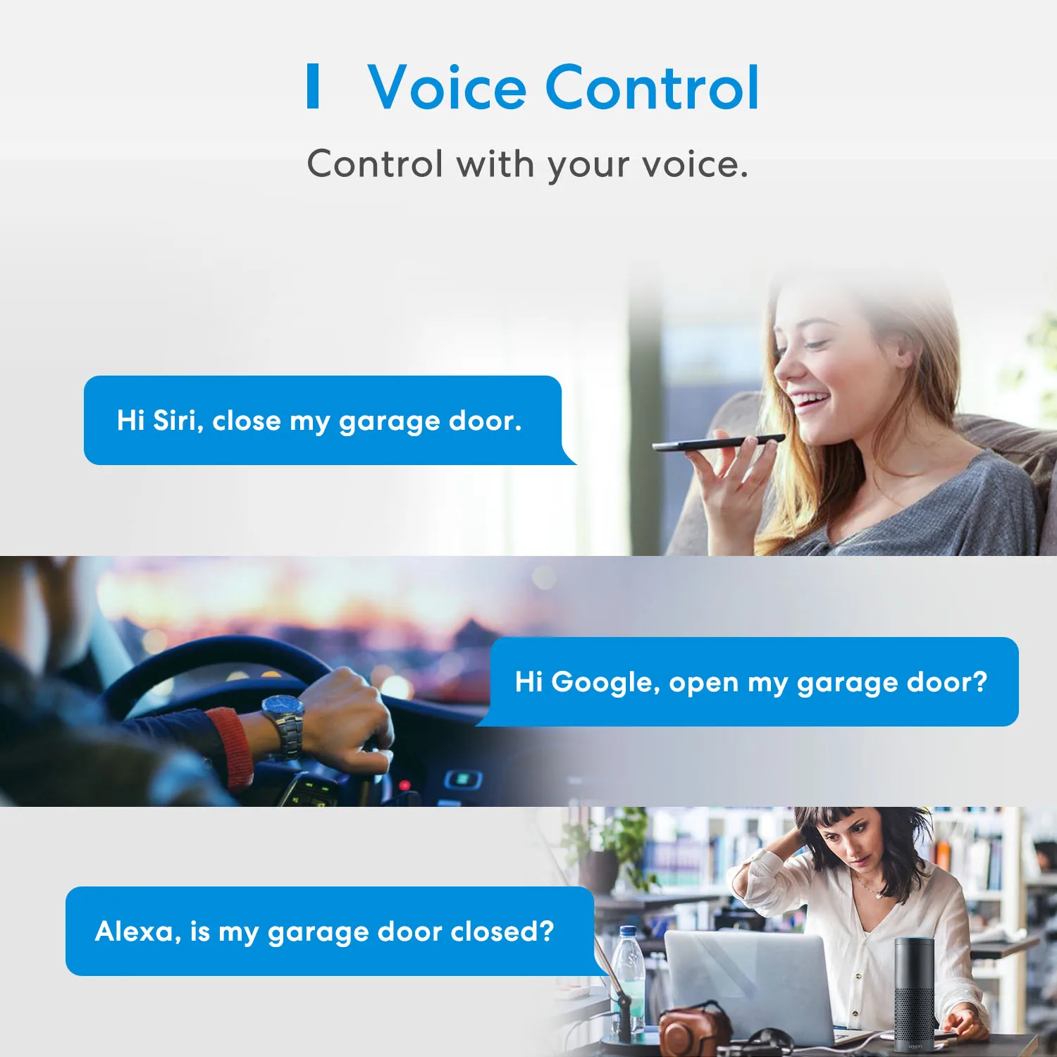 Get alerts when your garage door opens, closes, opens for a long time, or is forgotten to be closed at bedtime.